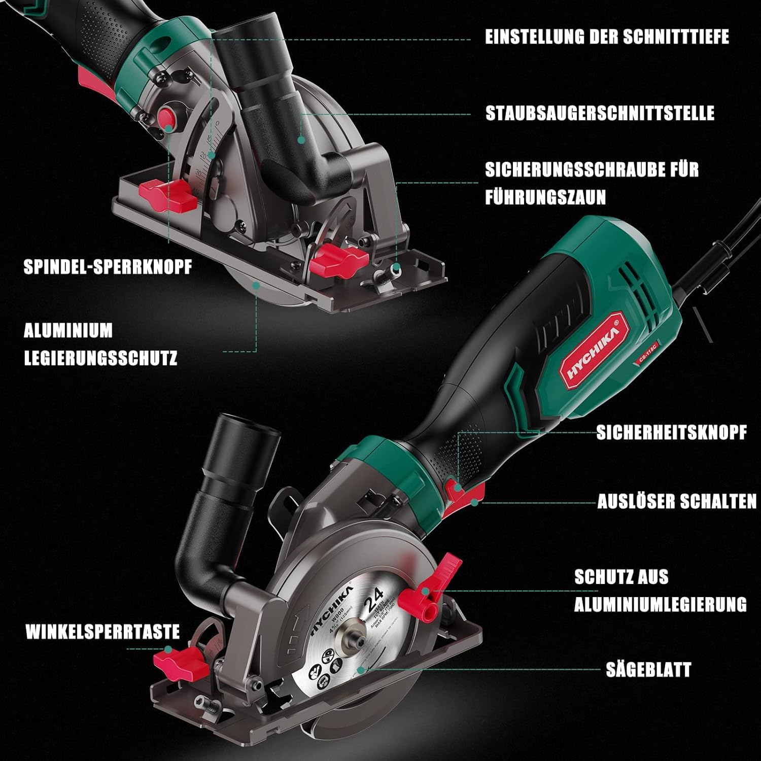 HYCHIKA Handkreissäge 750W – Set mit 3 Sägeblättern 115/125mm