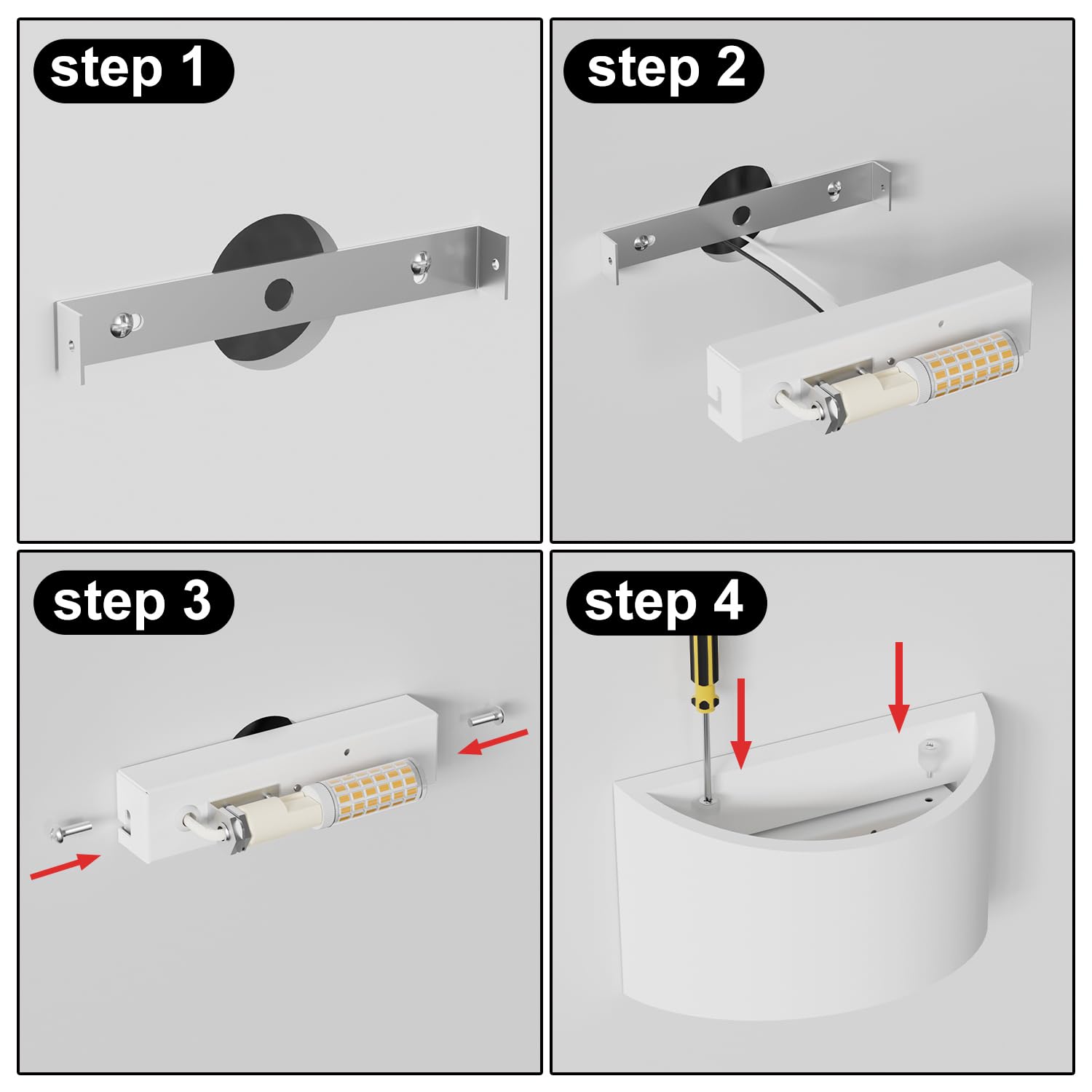 Der Lieferumfang umfasst zwei Wandleuchten, zwei passende G9 LED-Birnen und eine Anleitung mit dem nötigen Montagematerial. Die Installation ist unkompliziert, wir empfehlen jedoch aus Sicherheitsgründen die Durchführung durch eine Fachperson.