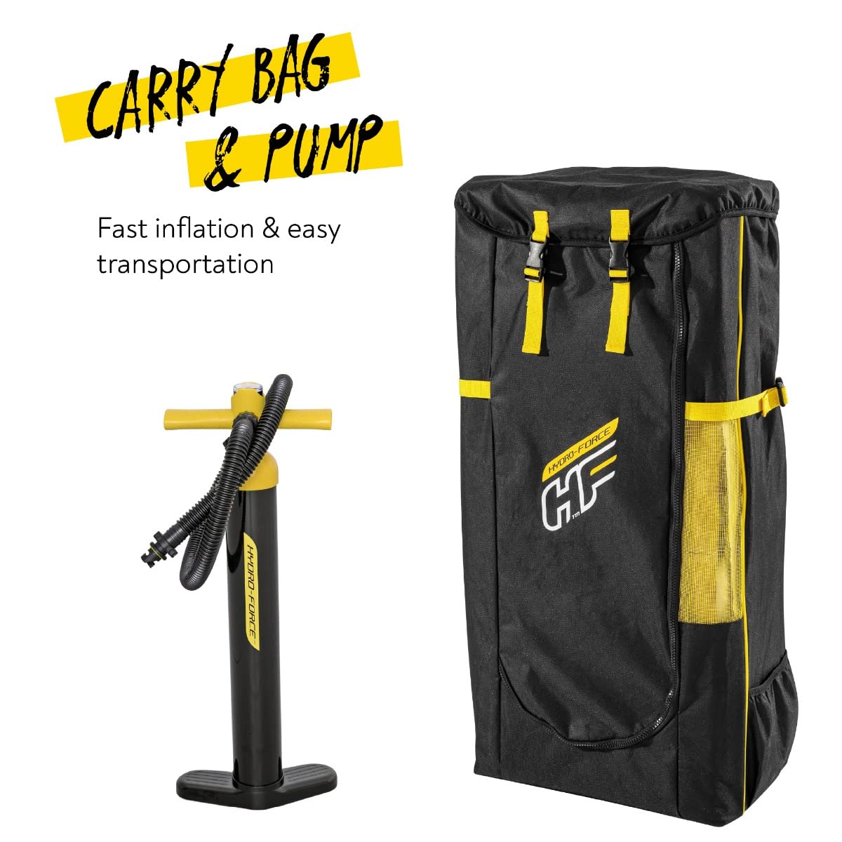 - Kompletter Lieferumfang: SUP-Handpumpe, Paddel, Transportrucksack, Coil-Leash (Sicherheitsleine), abnehmbarer Sitz, Fussstütze, 2 Finnen, Reparatur-Set
