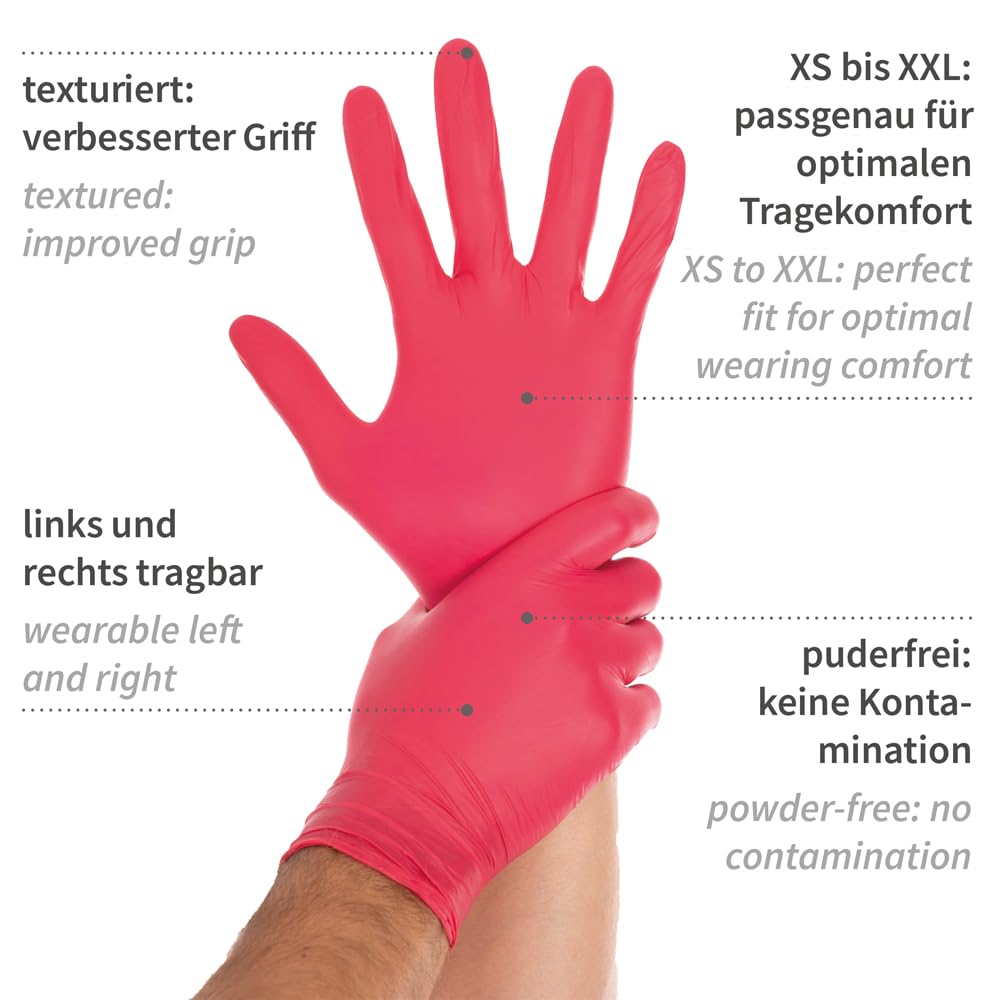 Dank fast zwei Jahrzehnten Markterfahrung bieten diese Nitrilhandschuhe eine ausserordentliche Zuverlässigkeit, die sich in Industrie, Medizin und Lebensmittelverarbeitung bewährt hat. Das leichte Material sorgt nicht nur für ein angenehmes Hautgefühl, sondern gewährt auch eine uneingeschränkte Bewegungsfreiheit und ein ausgezeichnetes Tastempfinden.