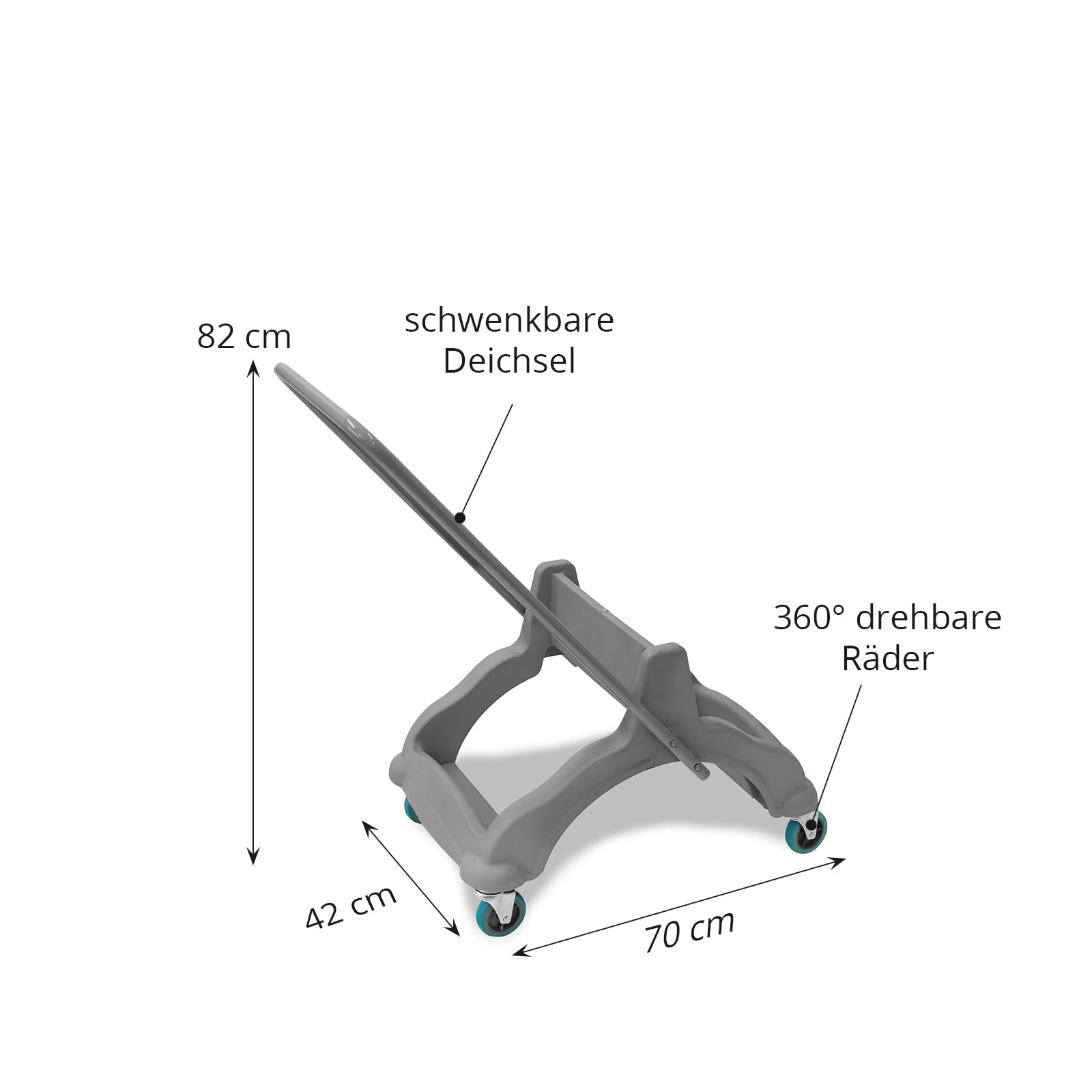 - Kompakte Bauweise: Mit seinen Massen von 70 x 42 x 82 cm (L x B x H) ist der Wagen handlich und platzsparend.