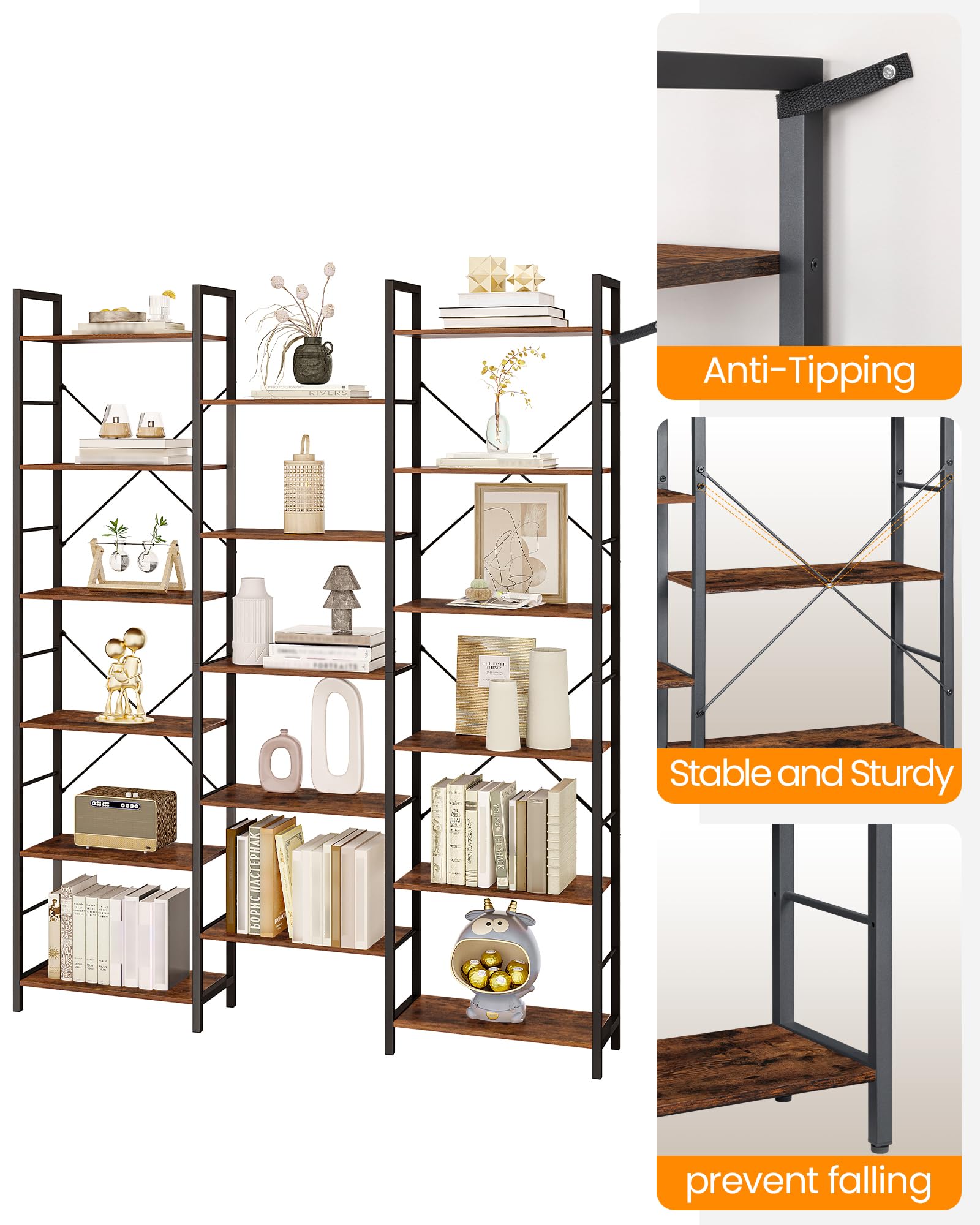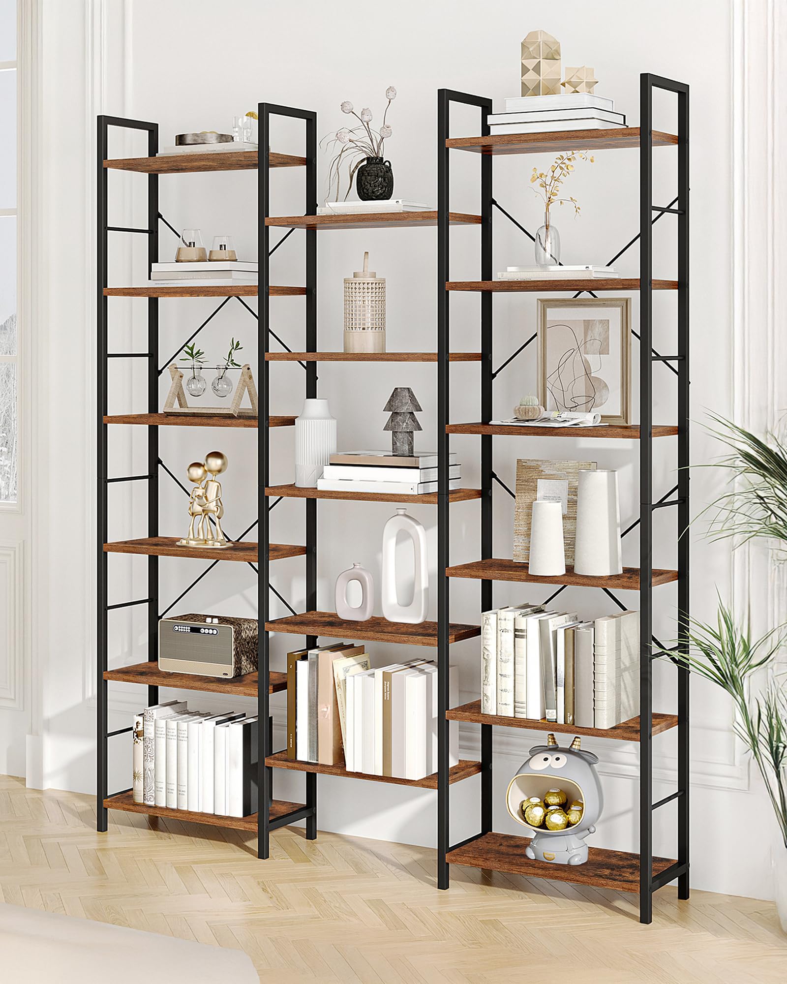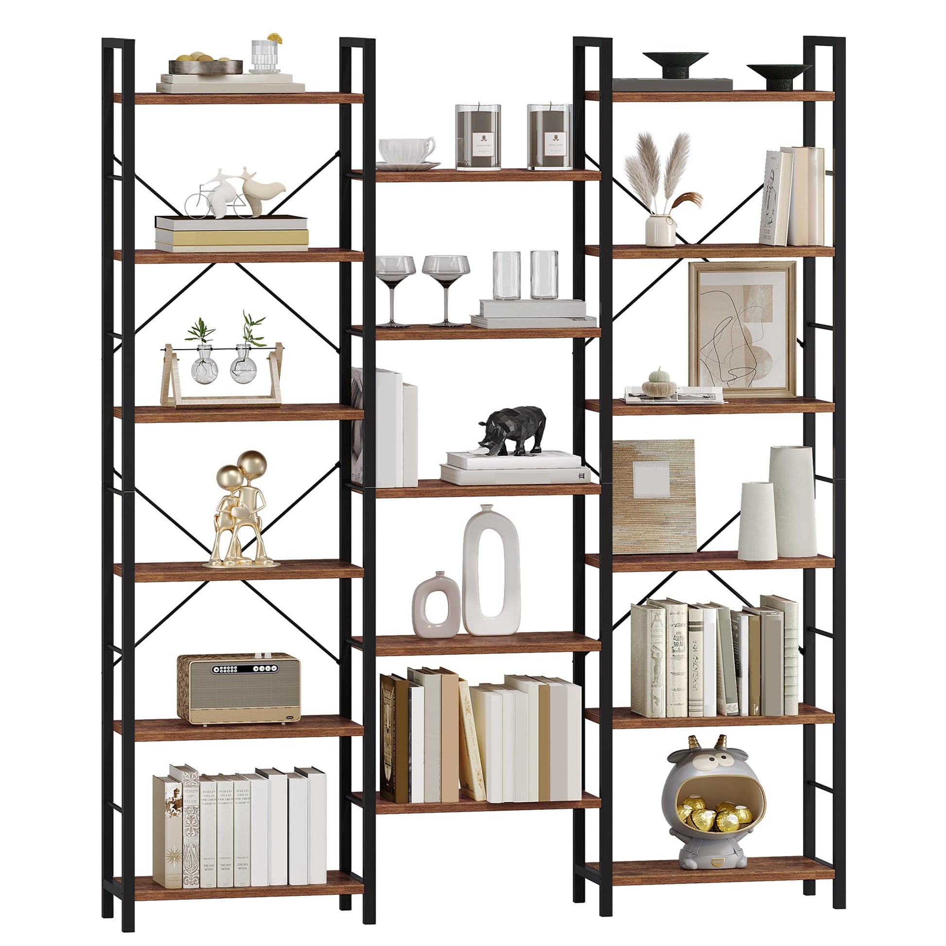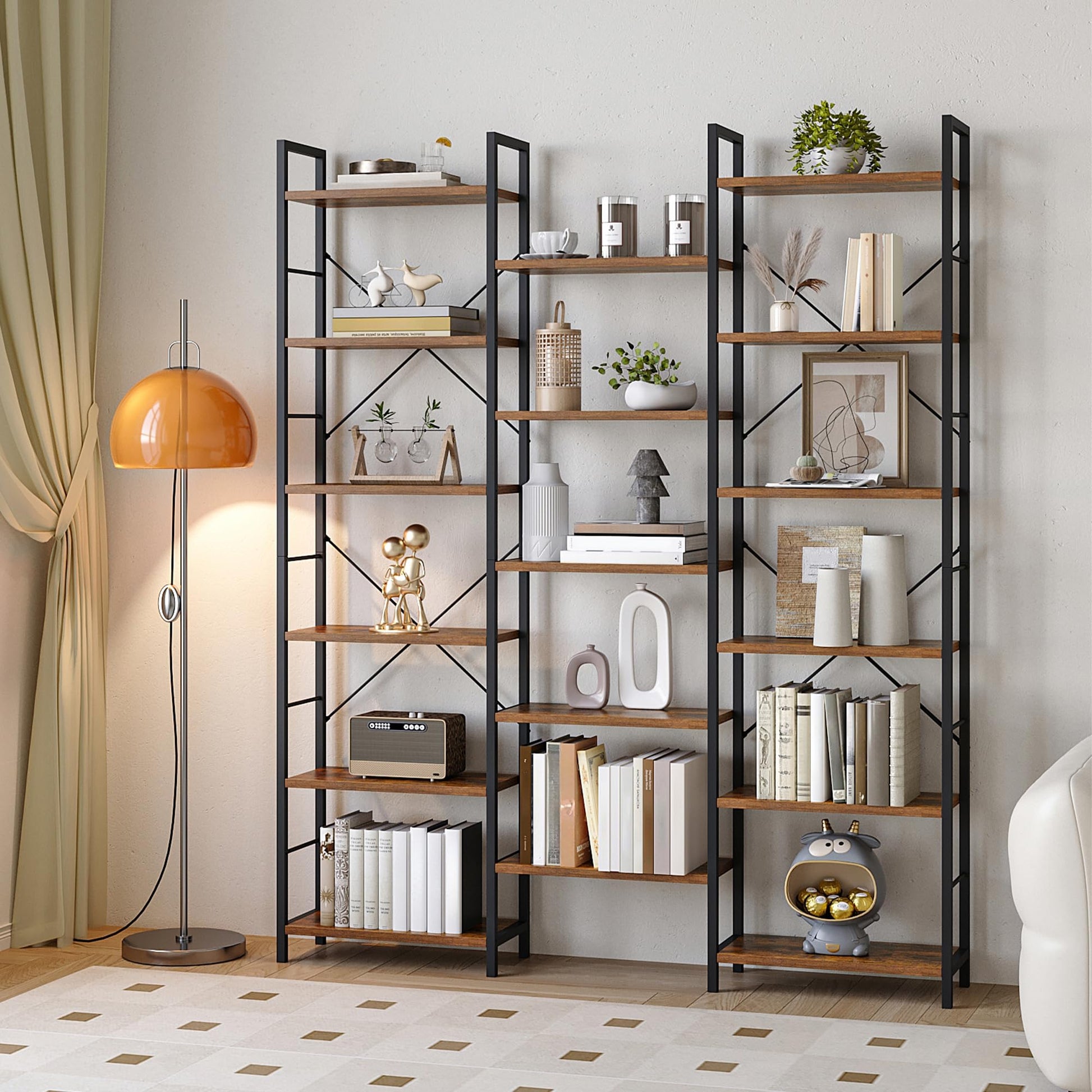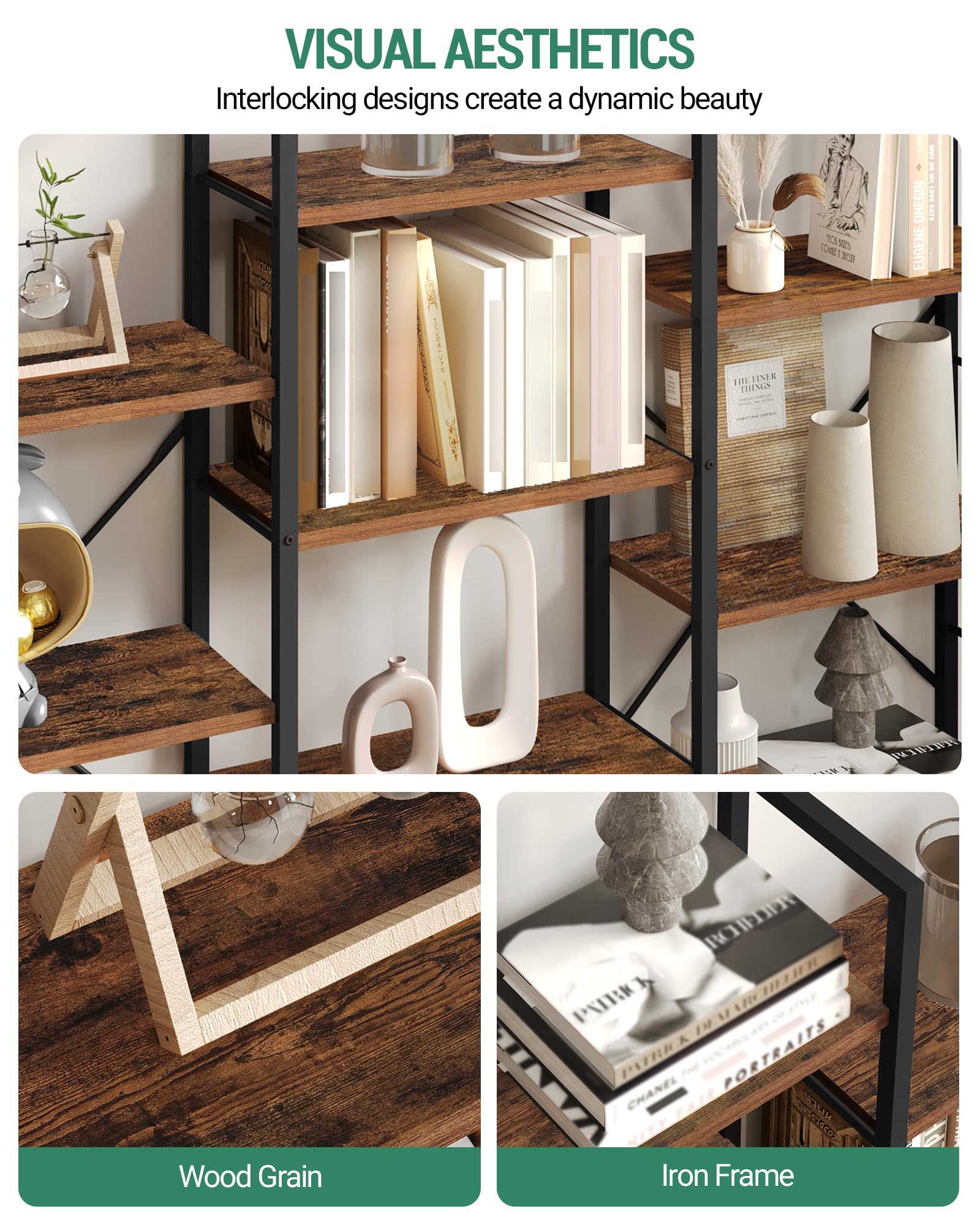 Hzuaneri Bücherregal 6 Etagen – Vintage Braun-Schwarz BC10101B