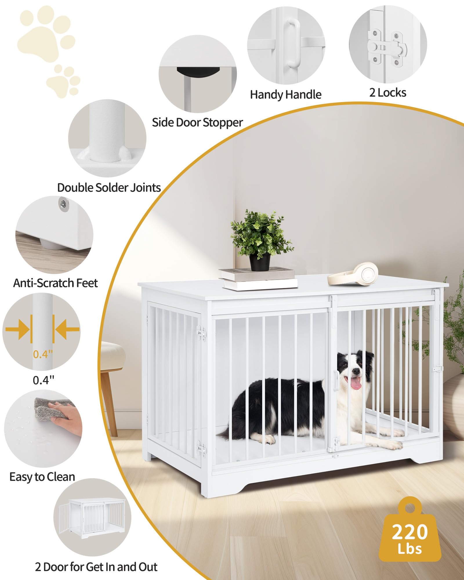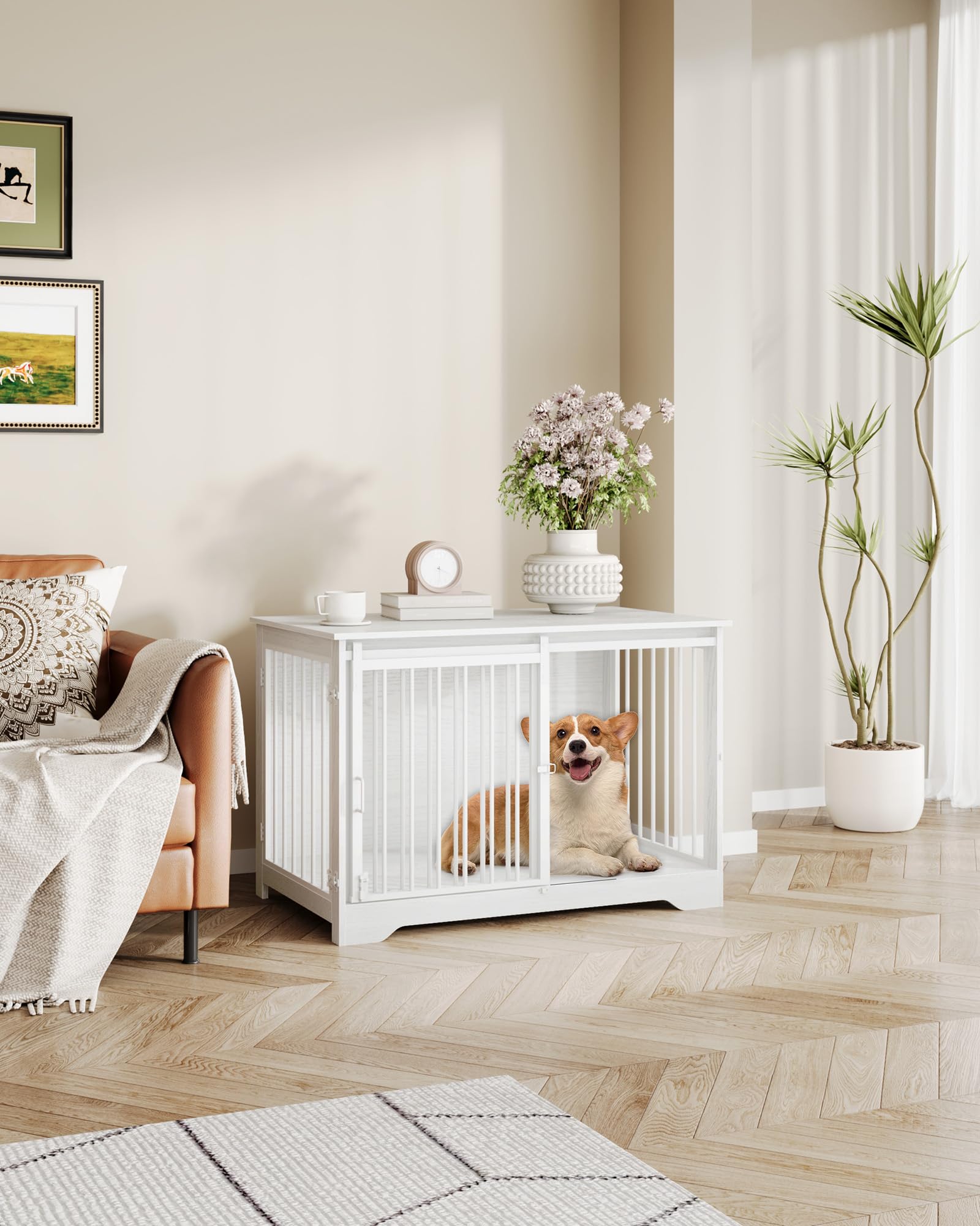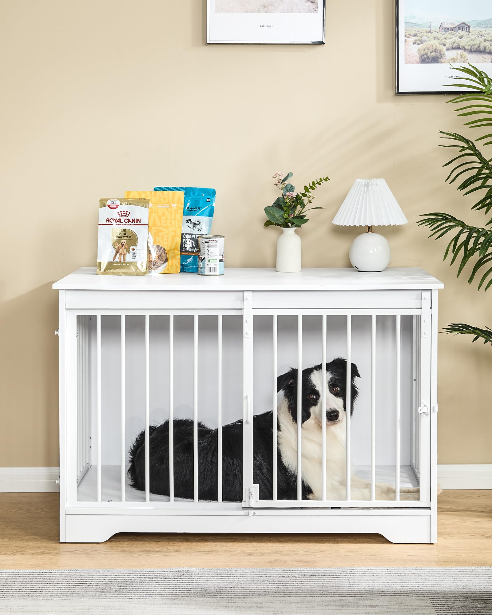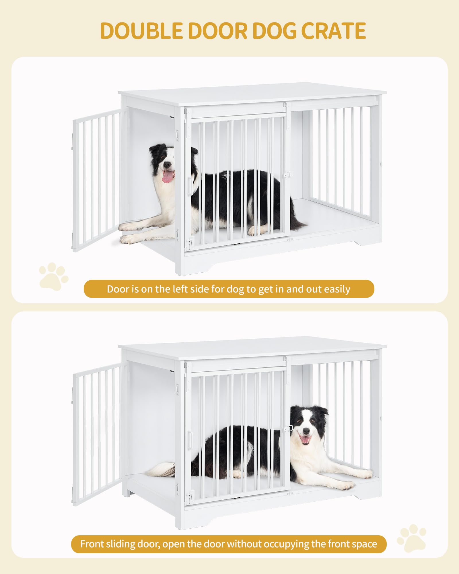 Hzuaneri Hundekäfig Möbel Indoor 100cm – Weiss Holz Schiebetüren