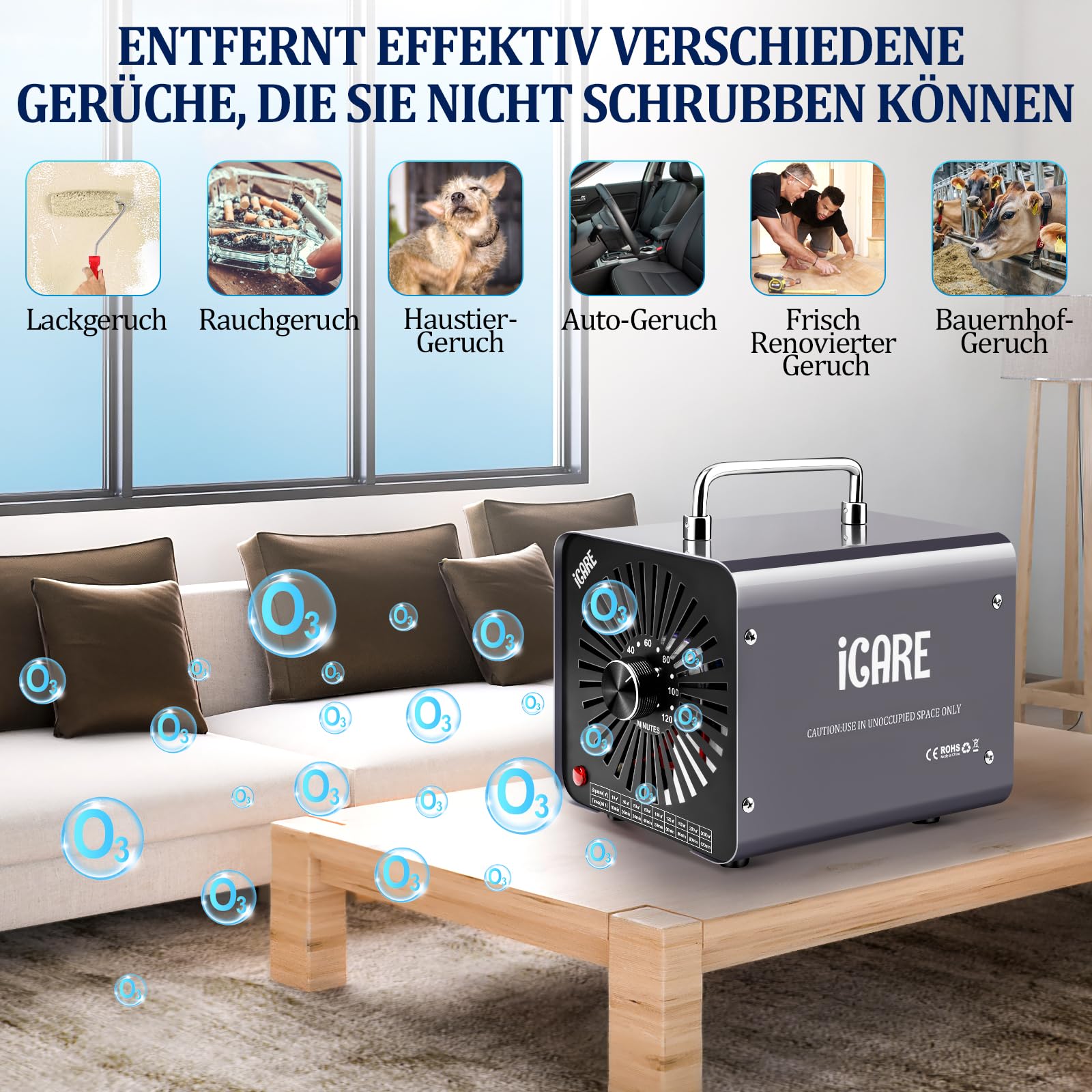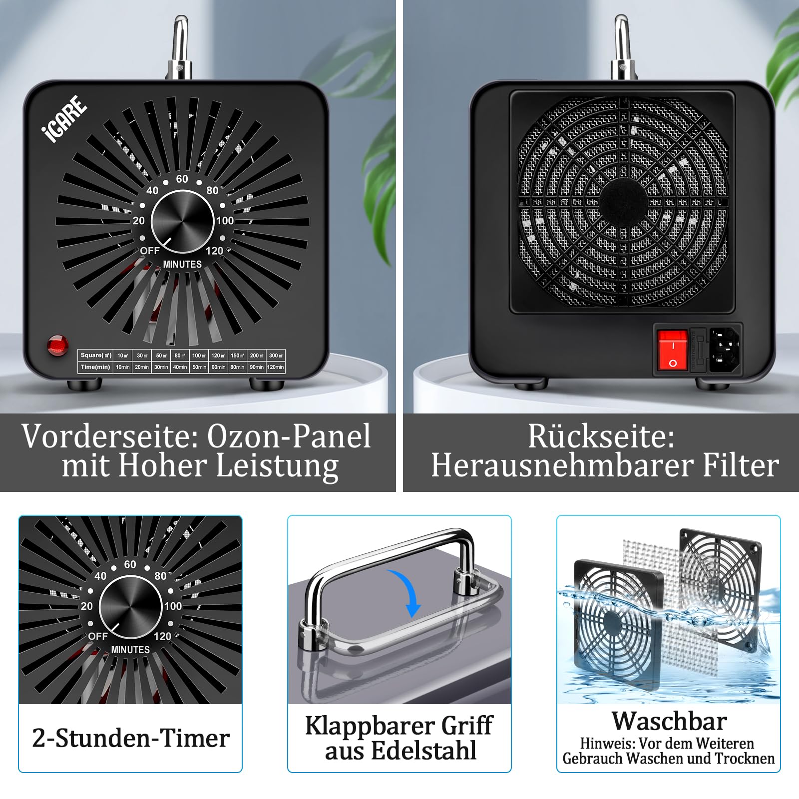 ICARE Ozongenerator 30000mg/h Ozongerät mit 120 Min Timer