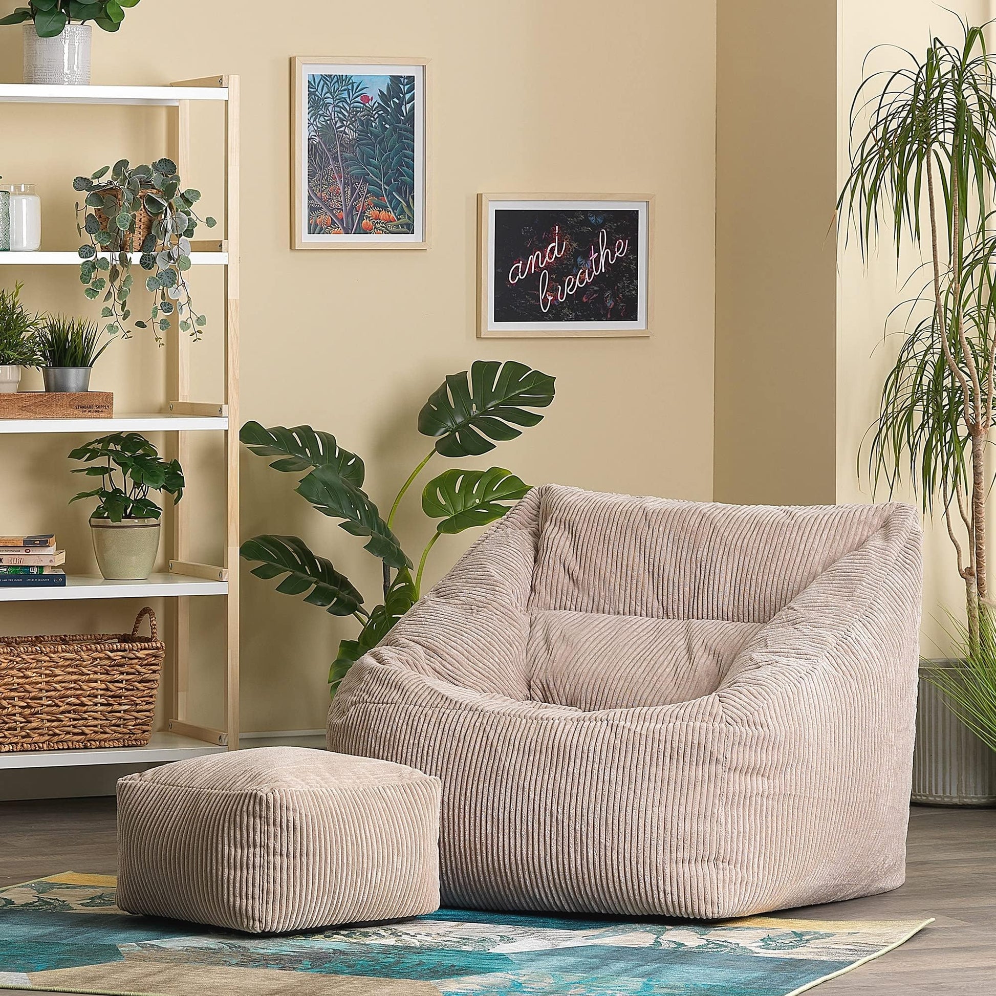 Icon Natalia Sitzsack Sessel Hocker Set – Beige Cord Stoff