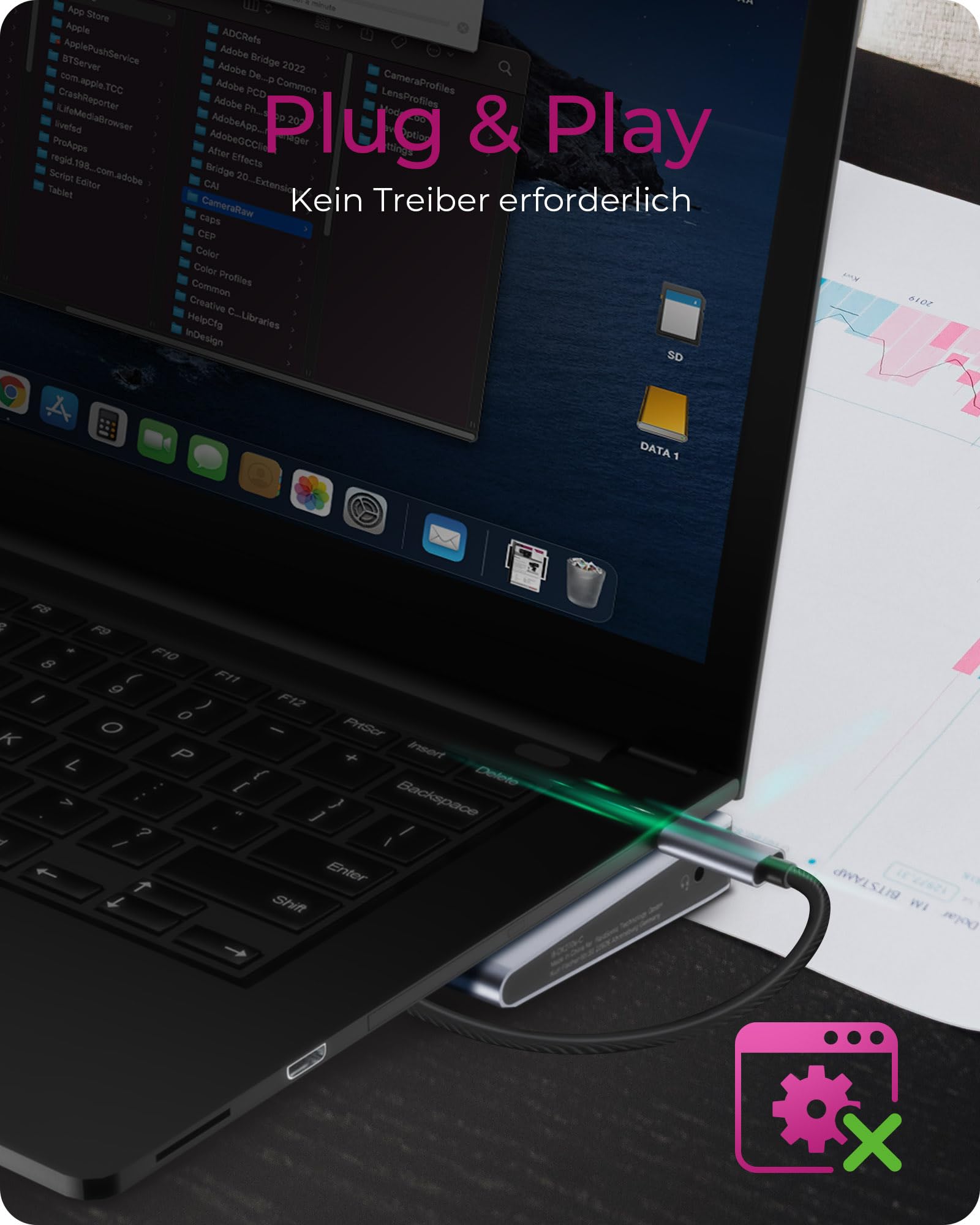 - Sofort einsatzbereit: Dank des robusten, mit Nylon ummantelten USB-C-Kabels und der Plug-&-Play-Funktionalität ist keine Treiberinstallation erforderlich.