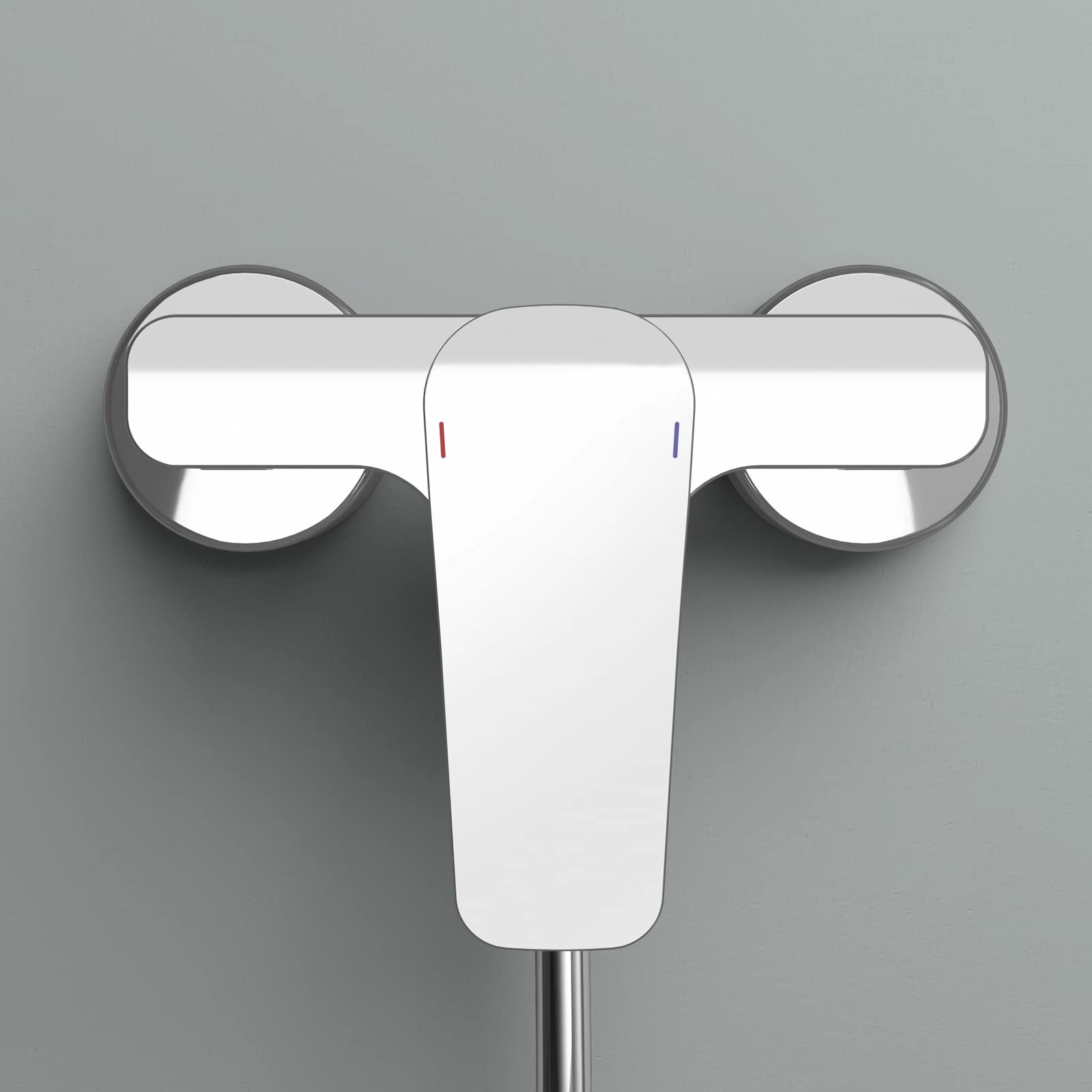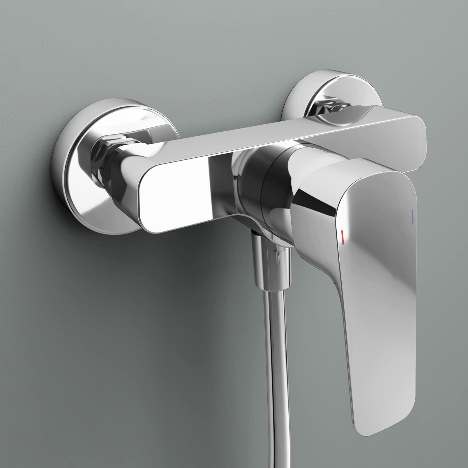 - Lieferumfang: Armatur, 2 runde Metallrosetten (Ø 70 mm), S-Anschlüsse