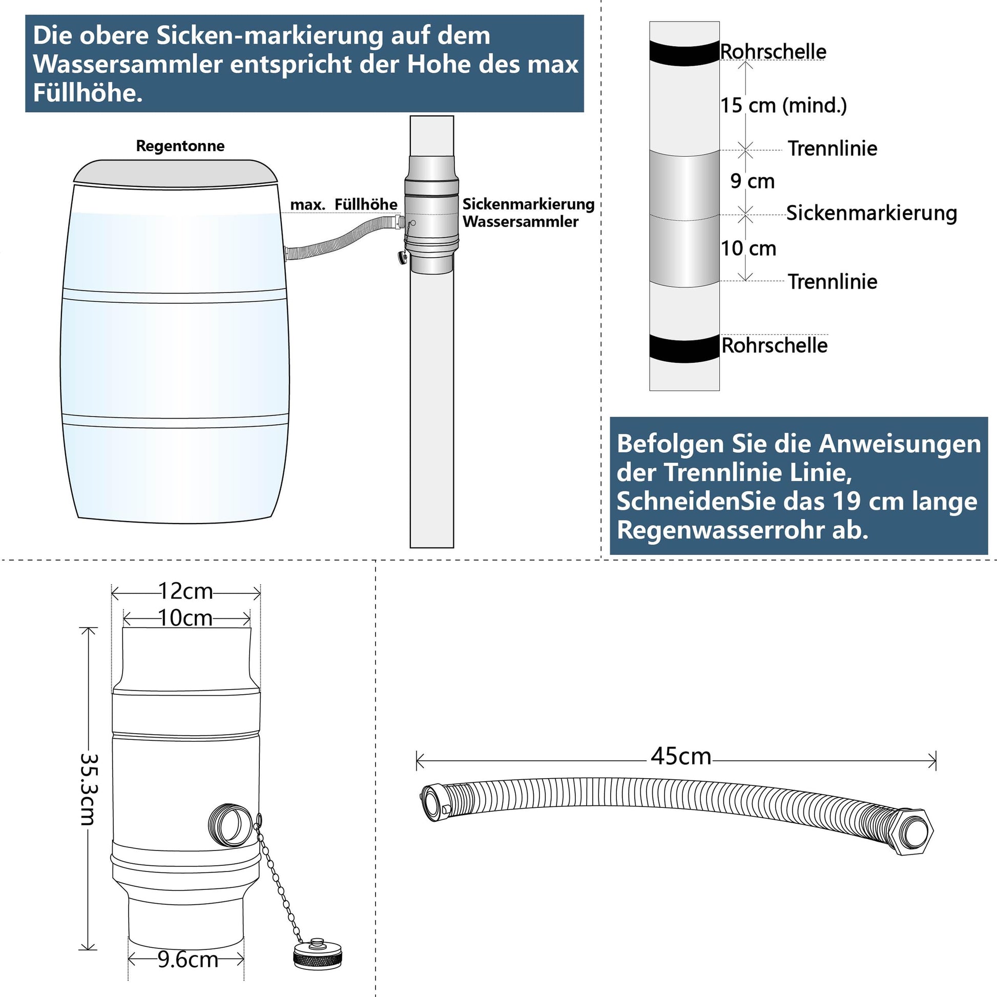 - Komplett-Set: Inklusive einem flexiblen, 45 cm langen Schlauch und dem passenden Anschluss für die Regentonne.