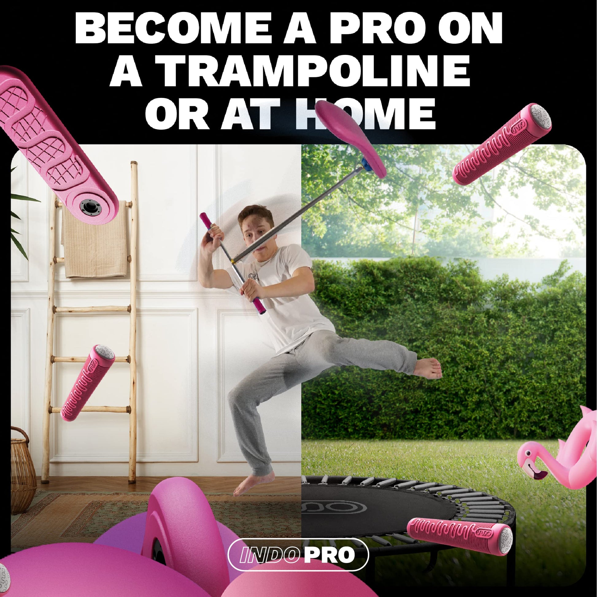 - Spezial-Deck: Das Deck ist so konstruiert, dass es sowohl auf Trampolinen als auch auf flachen, glatten Böden sicher verwendet werden kann, ohne diese zu beschädigen.