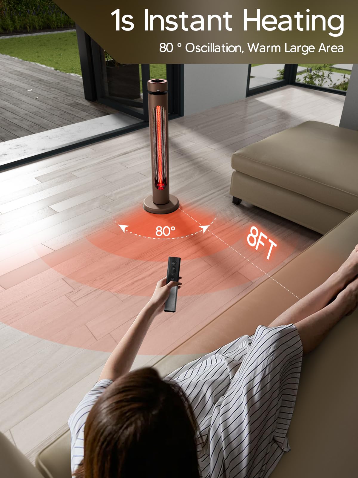 Der Heizstrahler sorgt für sofortige Wärme in nur 2 Sekunden. Er nutzt Infrarot-Technologie, die direkt den Körper erwärmt und nicht die Umgebungsluft. Dies erzeugt ein angenehmes, sonnenähnliches Wärmegefühl, das sogar die Durchblutung fördern kann.