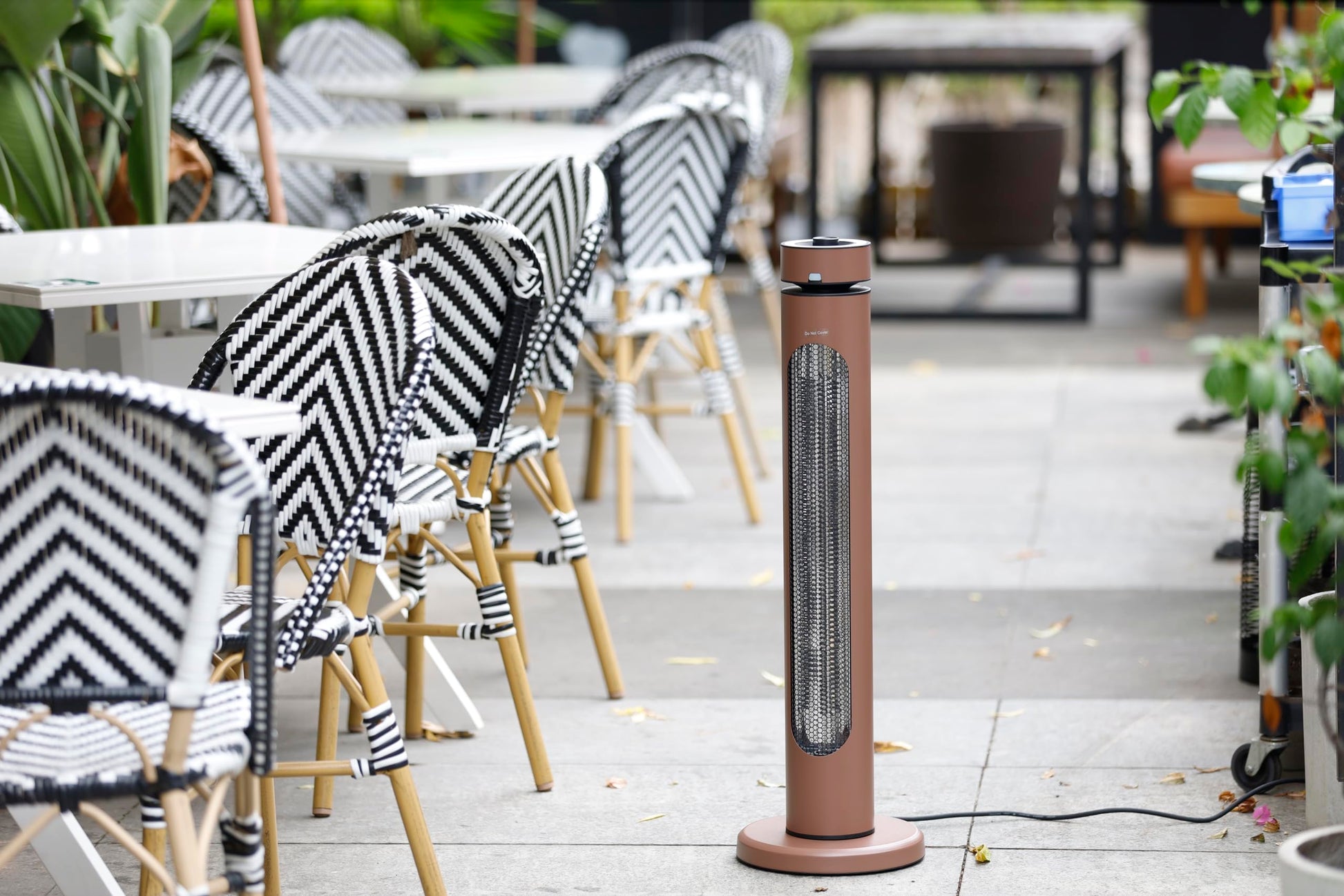 Mit einer komfortablen Höhe von 83 cm und der 75°-Oszillationsfunktion umhüllt die Wärme den gesamten Körper und nicht nur einzelne Partien. Die Schwenkfunktion ermöglicht es zudem, die Wärme mit mehreren Personen zu teilen. Dabei arbeitet das Gerät äusserst geräuscharm und stört weder bei Gesprächen noch in ruhigen Momenten.