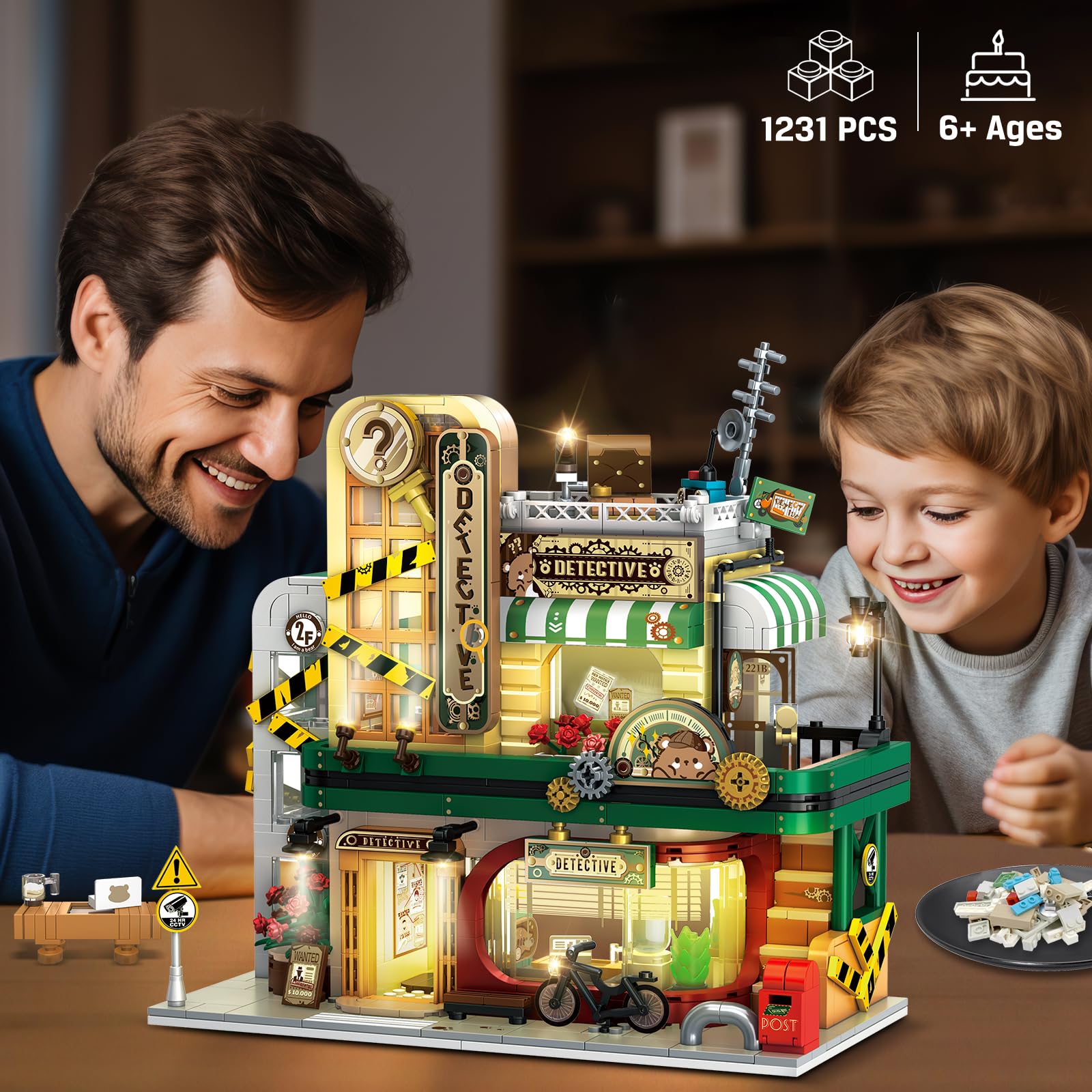 Tauchen Sie ein in die geheimnisvolle Welt der Detektive mit diesem faszinierenden Bauset. Erschaffen Sie aus 1231 Teilen Ihr eigenes, dreistöckiges Detektivbüro, das voller Geheimnisse und interaktiver Details steckt.