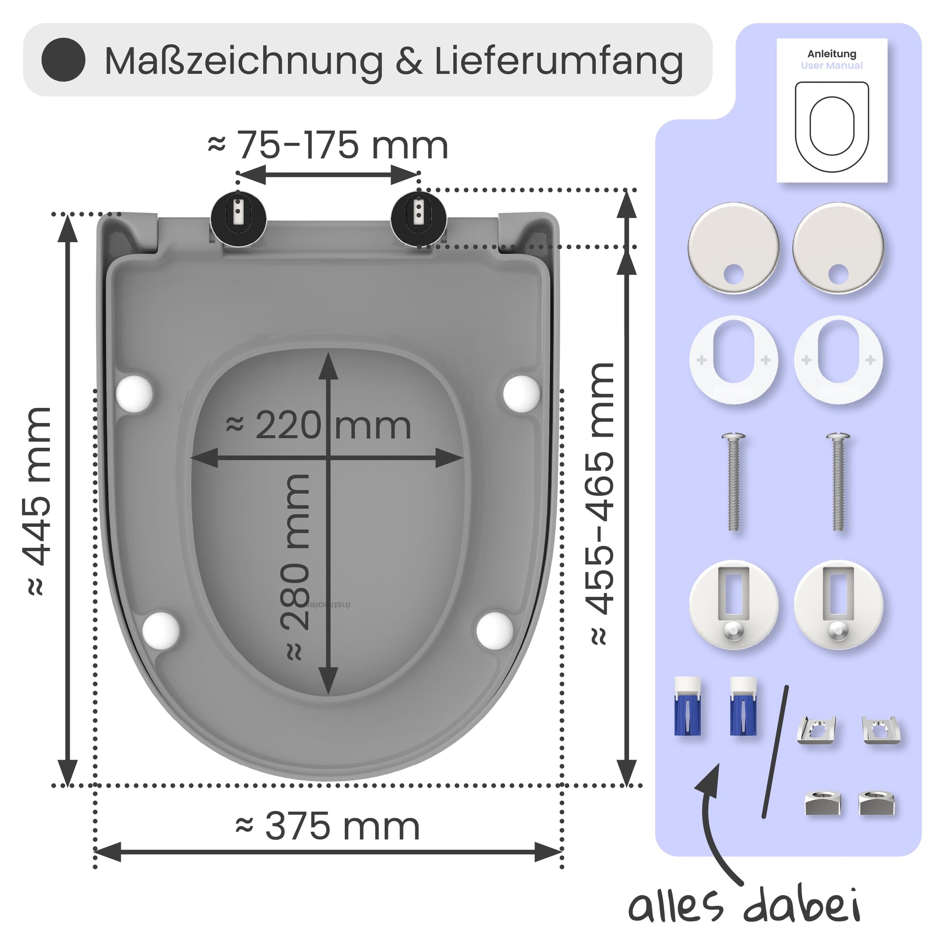 - Qualität aus Deutschland: Hergestellt aus erstklassigem Urea Duroplast, steht dieser WC-Sitz für Langlebigkeit, Robustheit und einen farbechten Grauton.