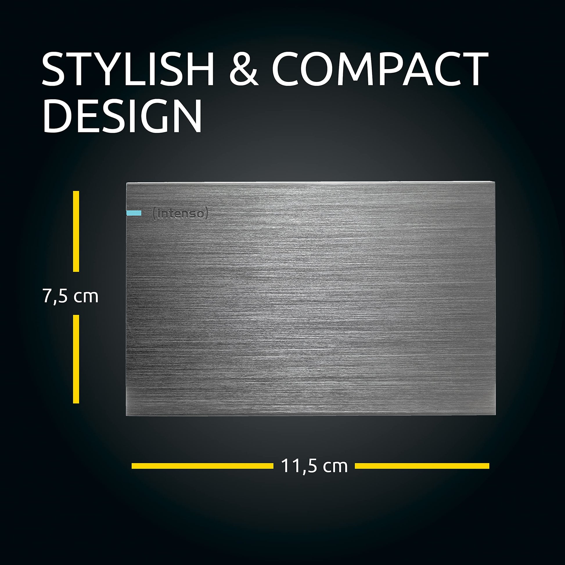 - Kompaktes Design: Gefertigt aus hochwertigem, anthrazitfarbenem Aluminium im handlichen 2,5-Zoll-Format.