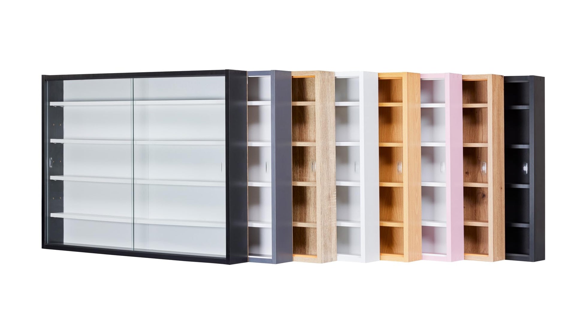 - Kompakte Masse: Mit einer Tiefe von nur 9.5 cm ist die Vitrine äusserst platzsparend und ideal auch für kleinere Räume oder schmale Gänge.