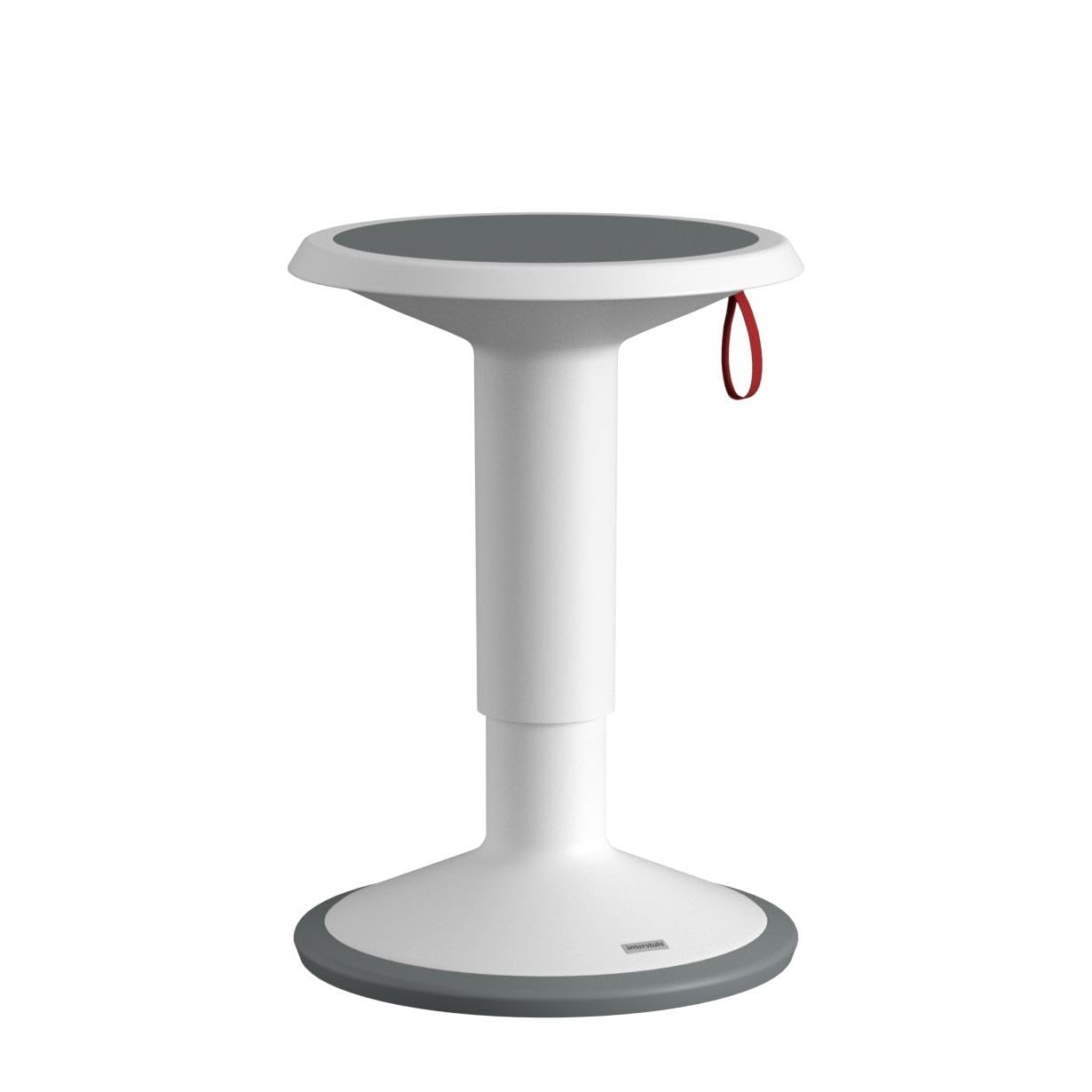 Die Höhenverstellung erfolgt stufenlos und kinderleicht über die markante rote Handschlaufe direkt unter der Sitzfläche. Dadurch können Sie die Sitzhöhe präzise an jede Körpergrösse sowie an Standard-Schreibtische und sogar an höhere Stehpulte anpassen.