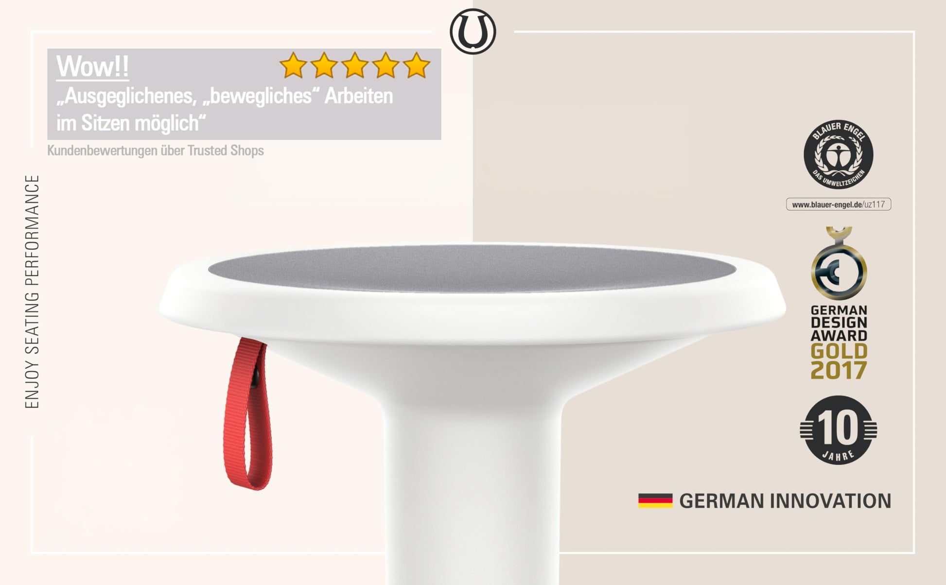 - Aktive Standfläche: Die speziell abgerundete und rutschhemmende Basis mit Kippschutz regt zu sanften Bewegungen in alle Richtungen an.