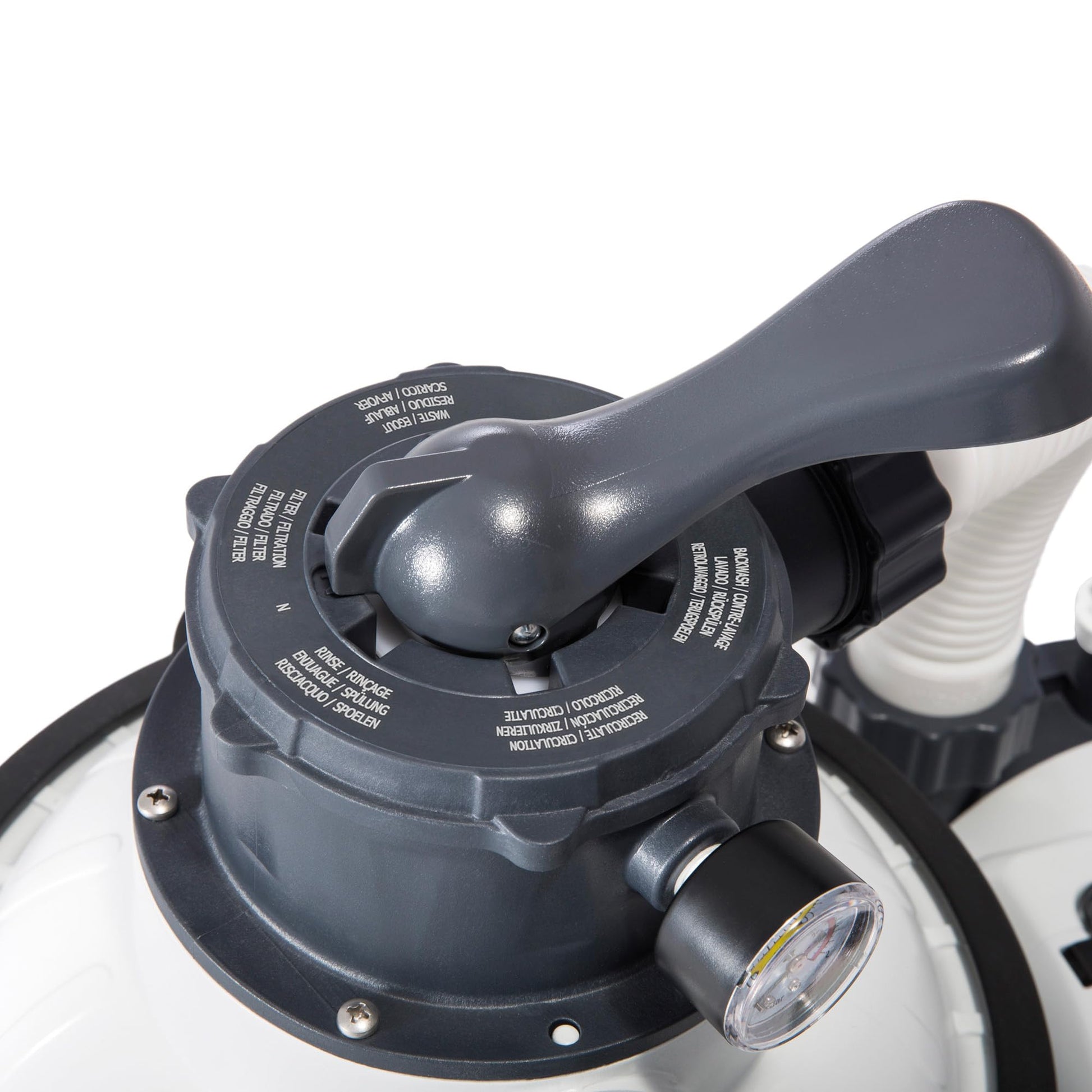 - Umfasst ein praktisches 6-Wege-Ventil zur einfachen Steuerung der Filterfunktionen.