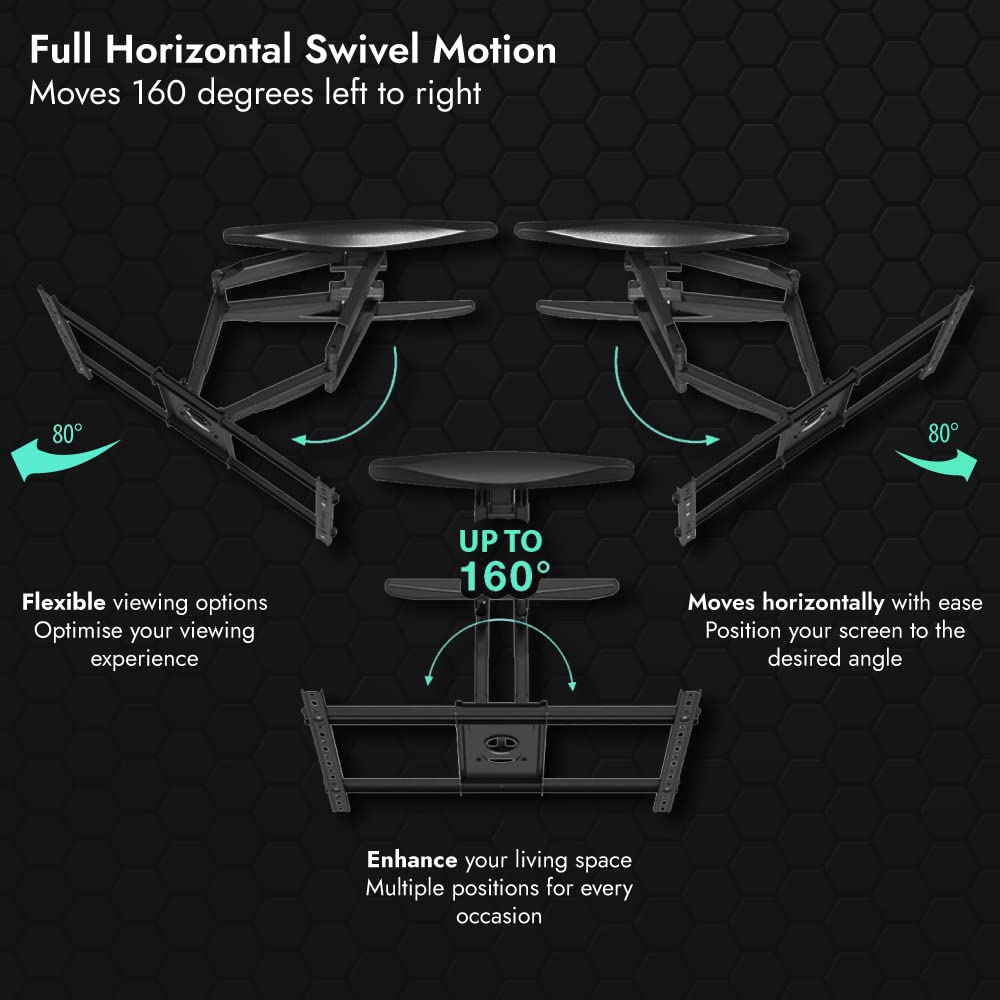 Diese robuste Wandhalterung bietet eine sichere und äusserst flexible Montagelösung für grosse Flachbildschirme und Curved-TVs, damit Sie Ihr Seherlebnis optimal gestalten können.