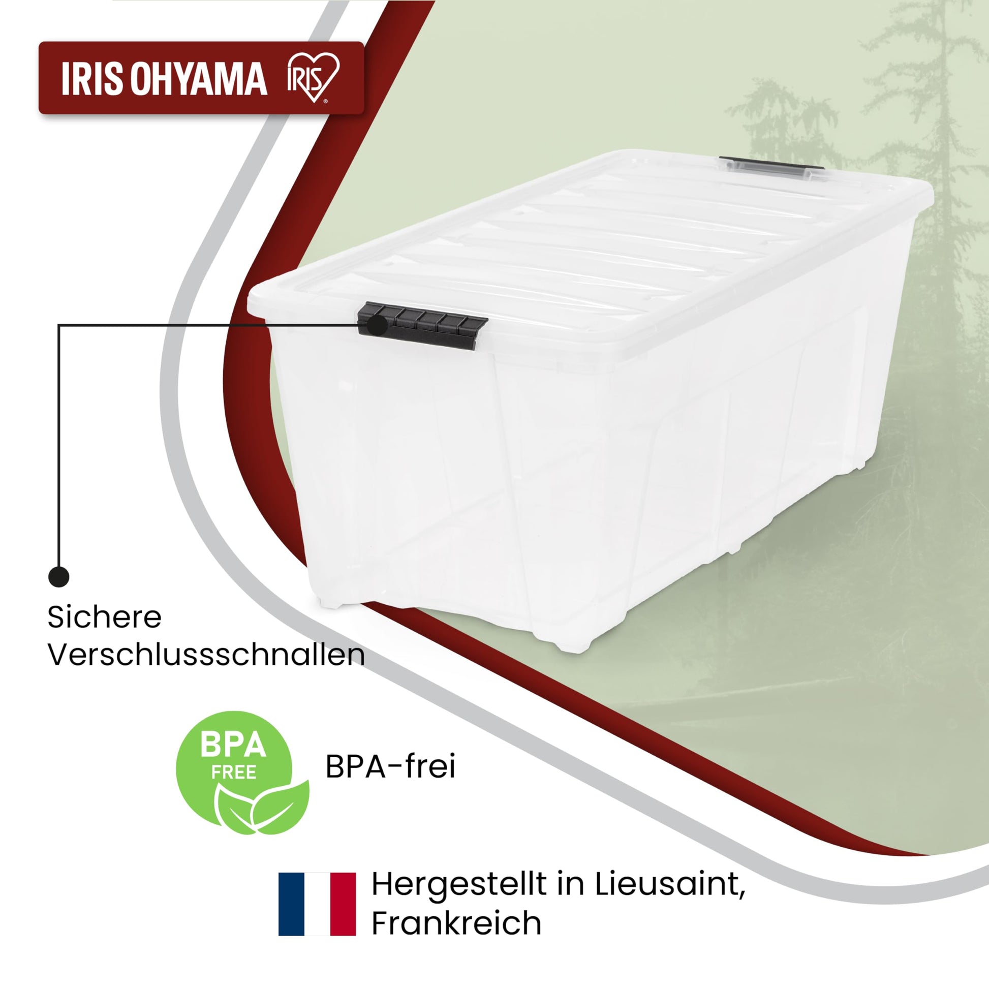 Die Boxen werden in Europa aus hochwertigem, widerstandsfähigem Polypropylen hergestellt. Das Material ist BPA-frei, was es zu einer sicheren Wahl für die Aufbewahrung im Haushalt macht und eine lange Lebensdauer garantiert.