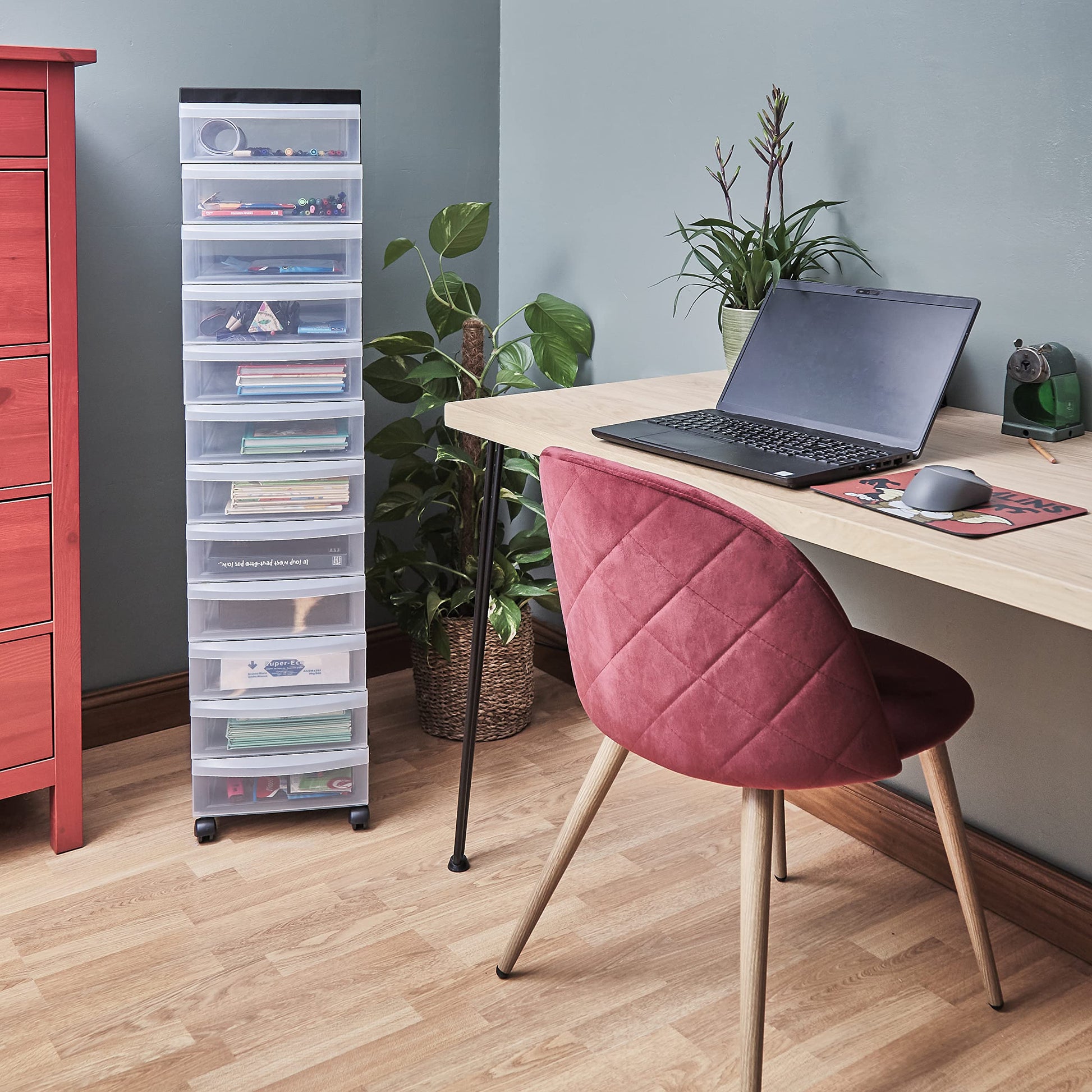 - Grosszügiger Stauraum: Zwölf flache Schubladen mit je 7 Litern Fassungsvermögen bieten reichlich Platz für Dokumente im A4-Format, Büromaterial oder Bastelutensilien.
