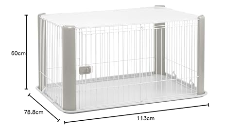 Dieser vielseitige Laufstall von Iris Ohyama bietet kleinen Haustieren wie Welpen oder Katzen einen sicheren und komfortablen Rückzugsort. Er eignet sich hervorragend für den Gebrauch im Haus sowie im Freien und lässt sich unkompliziert aufstellen.