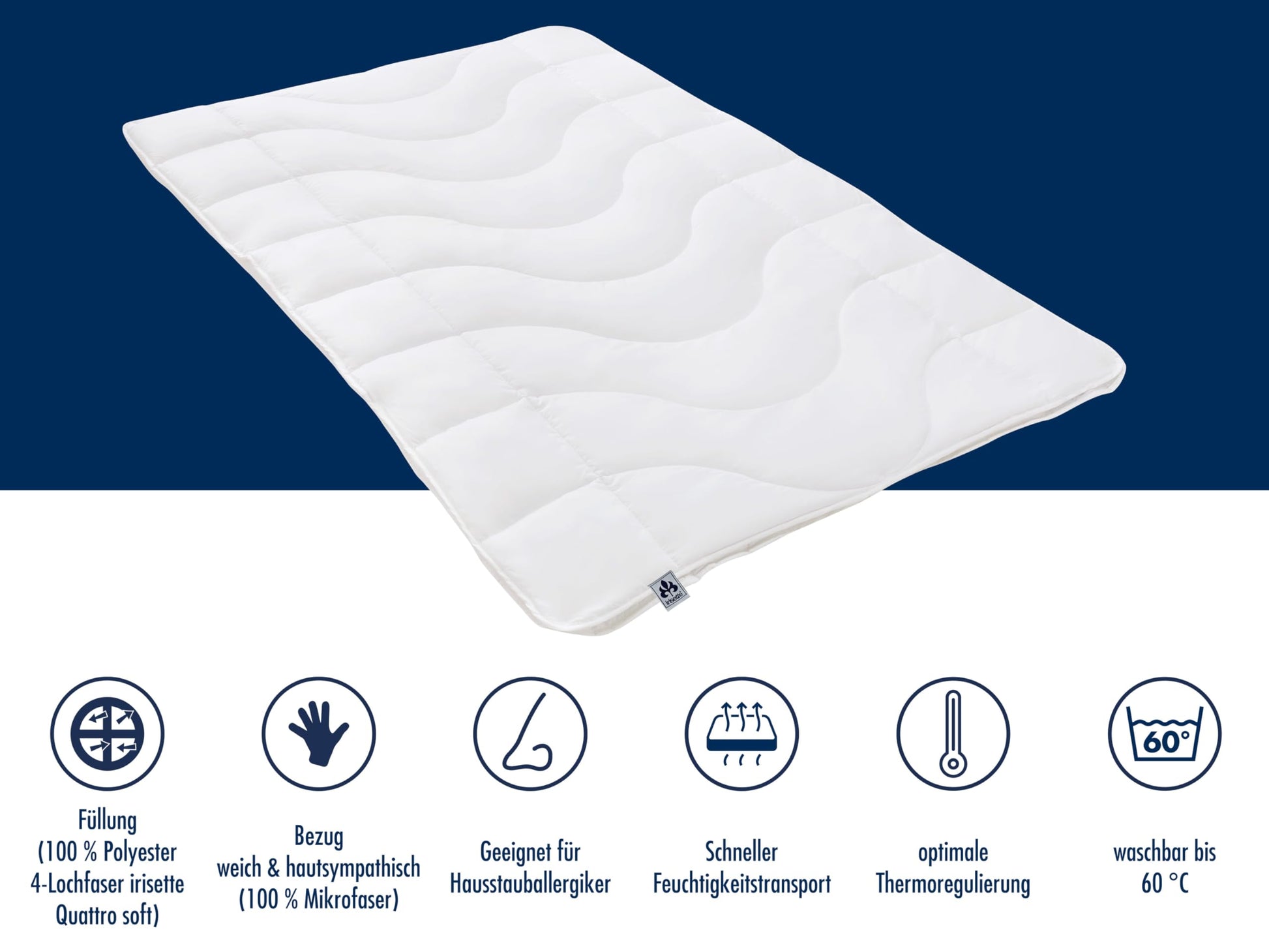 - Hochwertige Füllung: Gefüllt mit der atmungsaktiven Irisette Quattro Soft 4-Lochfaser, die für ein exzellentes Bauschvolumen und hohe Langlebigkeit sorgt.