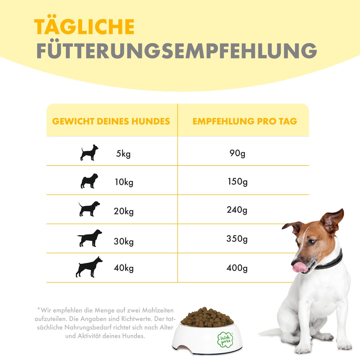 - Getreidefreie Formel: Anstelle von Getreide werden bekömmliche Kartoffeln als Kohlenhydratquelle genutzt, ideal für sensible Hunde.
