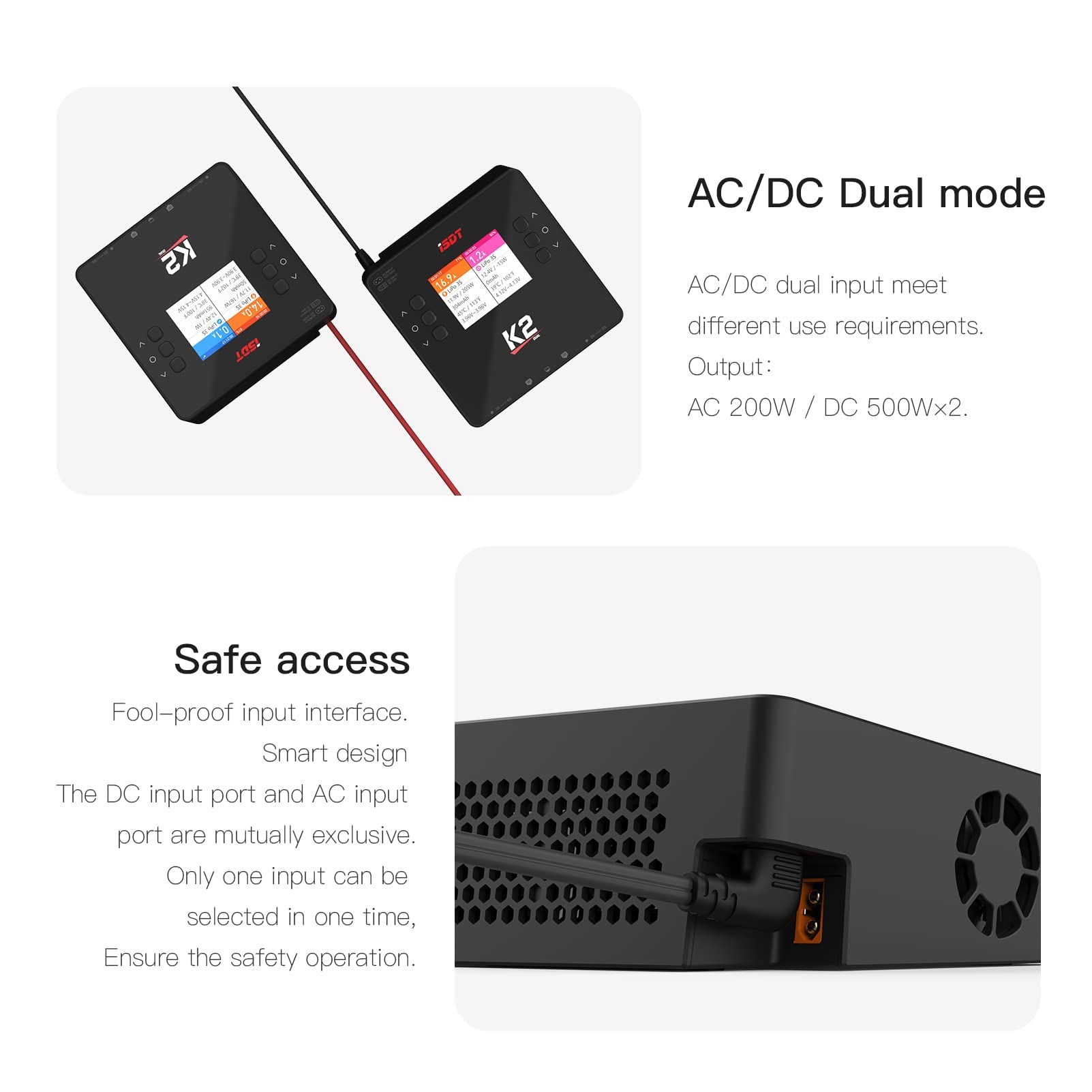 Das ISDT K2 Air ist ein hochentwickeltes und intelligentes Zweikanal-Ladegerät, das Leistung und moderne Steuerungsmöglichkeiten für eine Vielzahl von Akkutypen vereint. Dank AC- und DC-Betrieb ist es die perfekte Ladelösung für Ihre Werkstatt und für unterwegs.