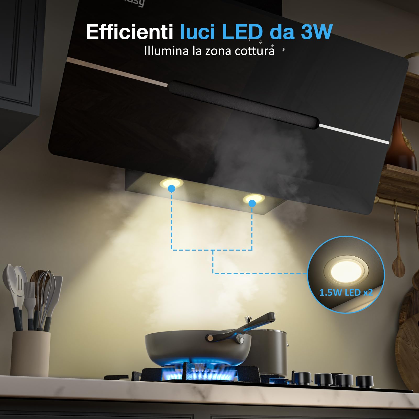 - Helle Ausleuchtung: Zwei sparsame 1.5-Watt-LED-Leuchten sorgen für eine optimale Beleuchtung Ihrer Kochfläche.
