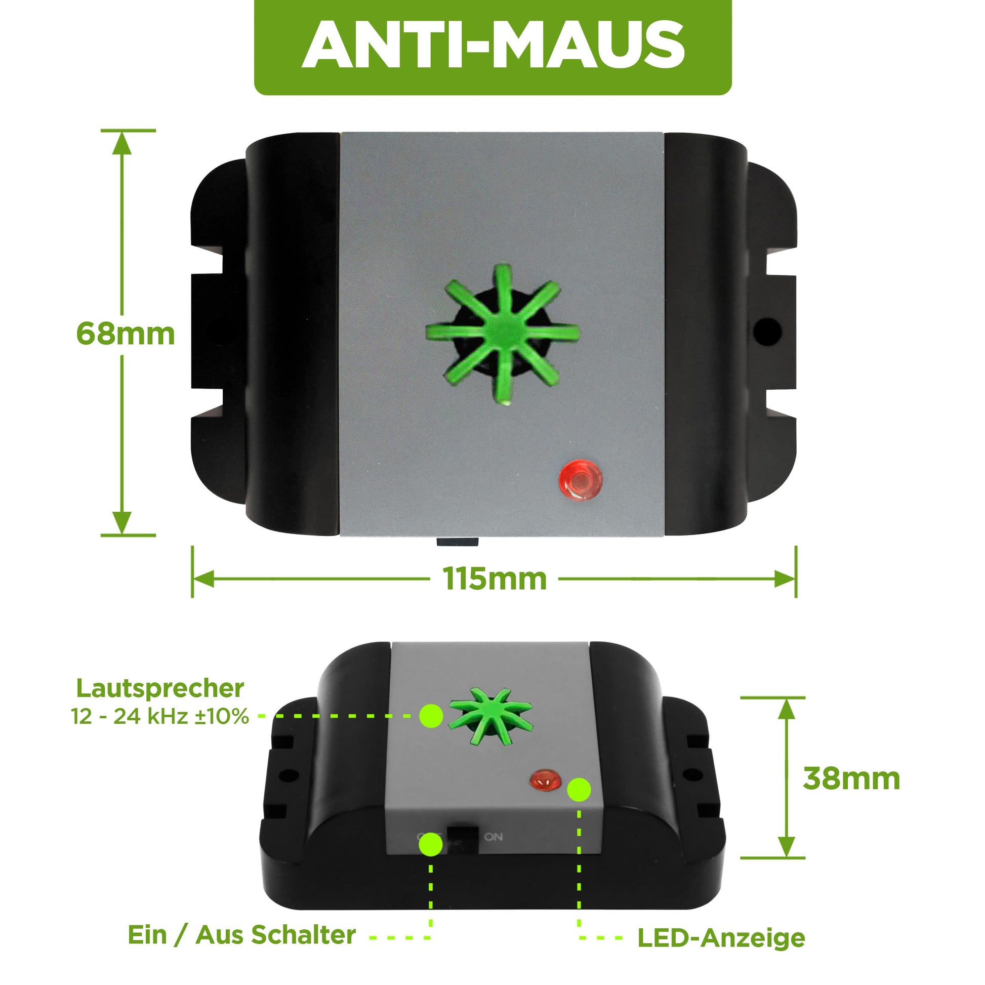 Das Gerät sendet Ultraschallwellen mit variabler Frequenz aus. Diese Töne sind für Mäuse und Ratten extrem unangenehm, sodass sie den Bereich meiden. Für Menschen, Hunde und Katzen sind diese hohen Frequenzen nicht hörbar.