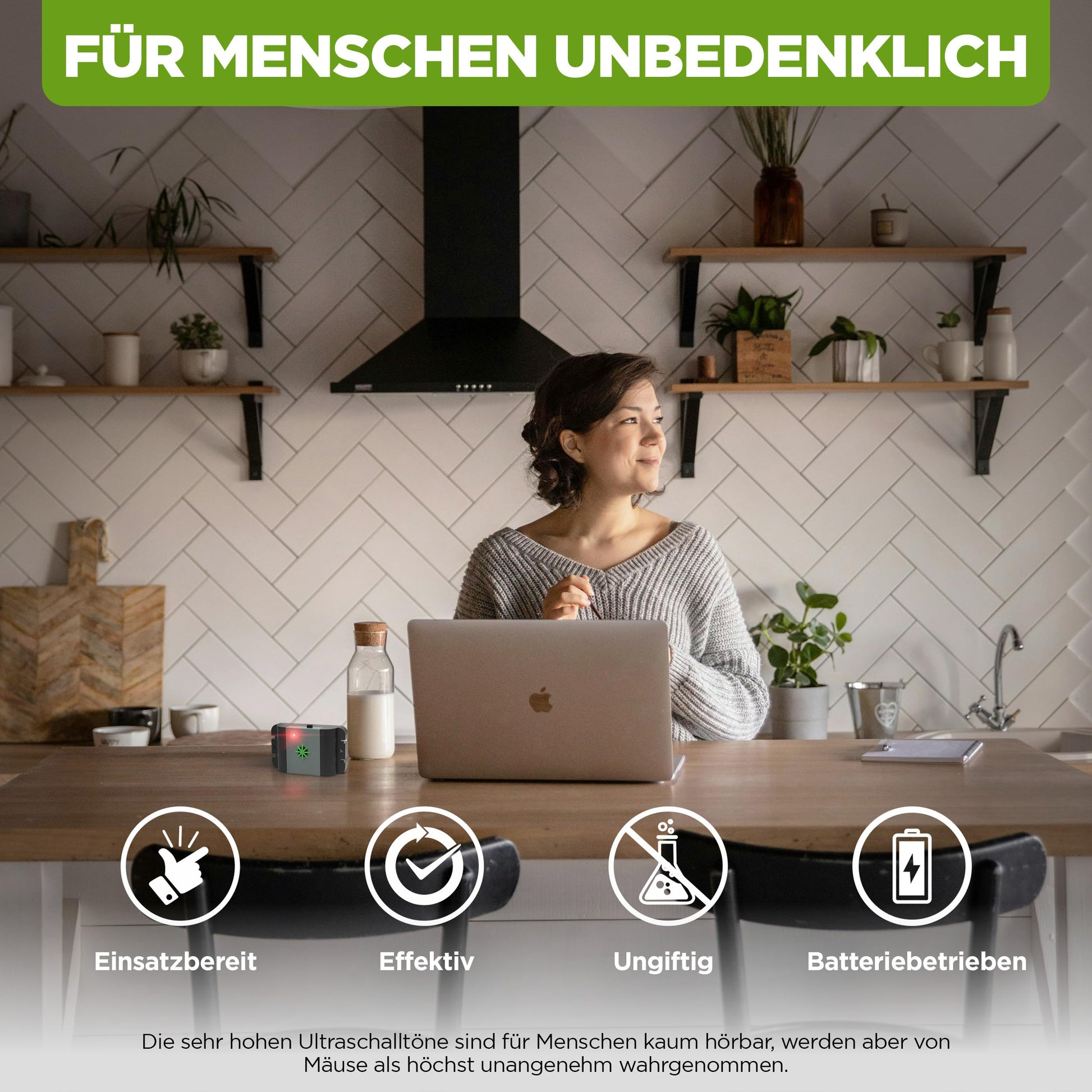 Der entscheidende Vorteil dieses Geräts liegt in seiner effektiven und zugleich schonenden Wirkungsweise. Die ausgesendeten Ultraschallwellen sind für Mäuse und Ratten äusserst unangenehm, sodass sie das beschallte Areal von selbst meiden und verlassen. Für Menschen sind diese hohen Frequenzen hingegen nicht wahrnehmbar.