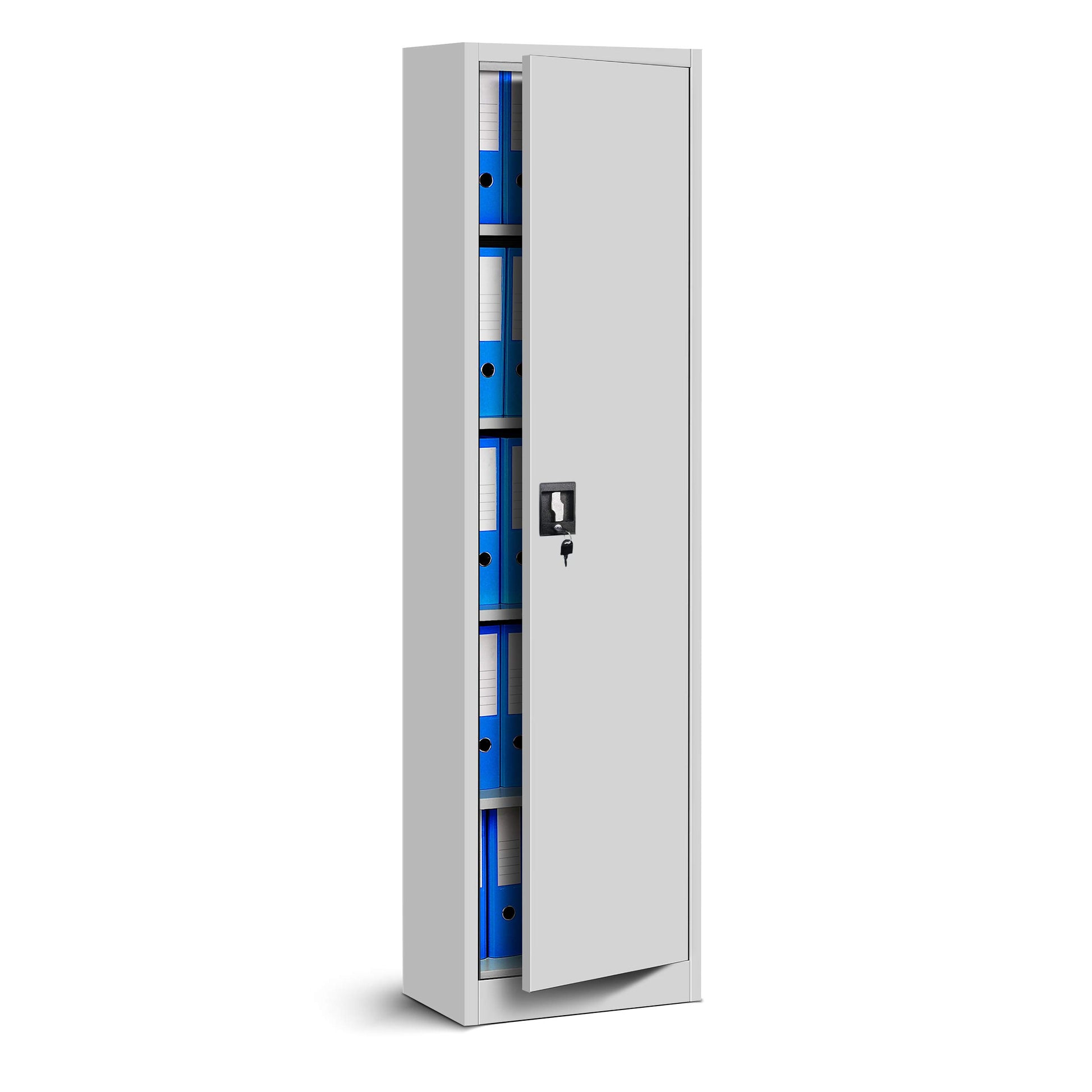 Dank seiner kompakten Masse von 185 x 45 x 40 cm und des schlichten grauen Designs ist er extrem vielseitig. Er eignet sich perfekt für Büros, Archive, Schulen, Werkstätten, Garagen oder Keller.
