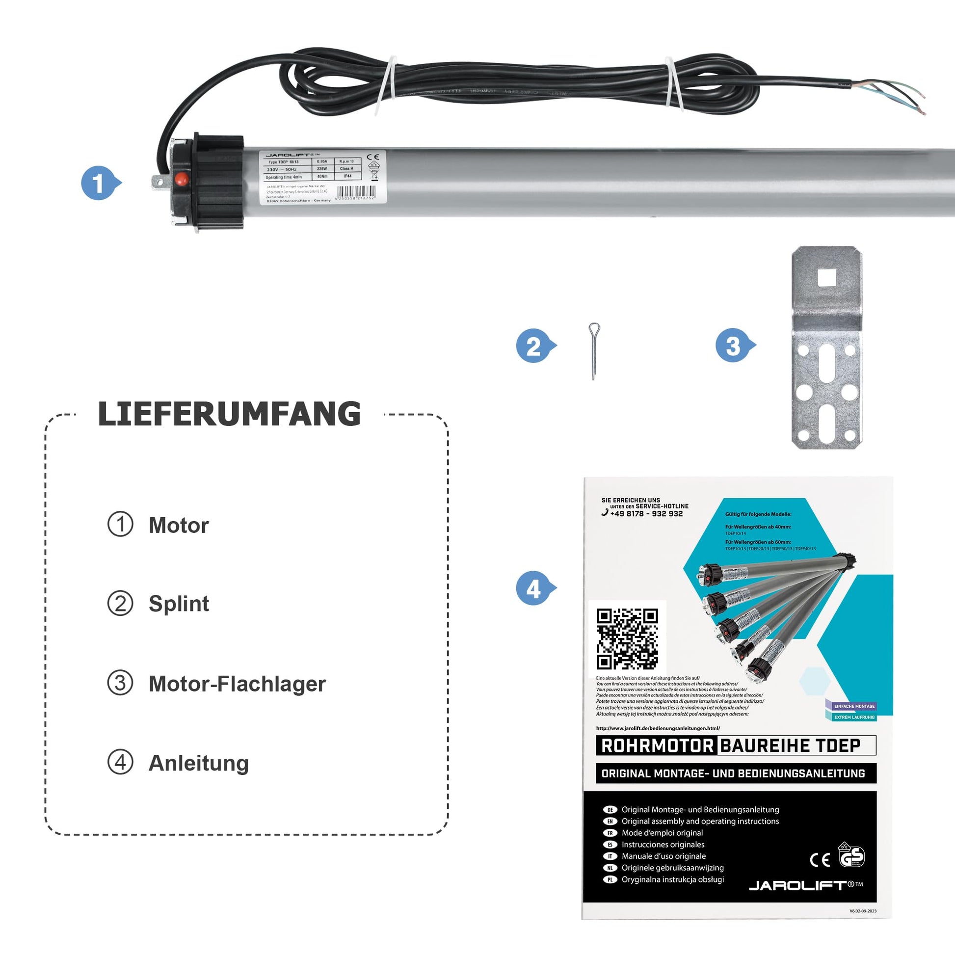 jarolift TDEP 10/13 Rohrmotor - SW60, 27kg Zugkraft