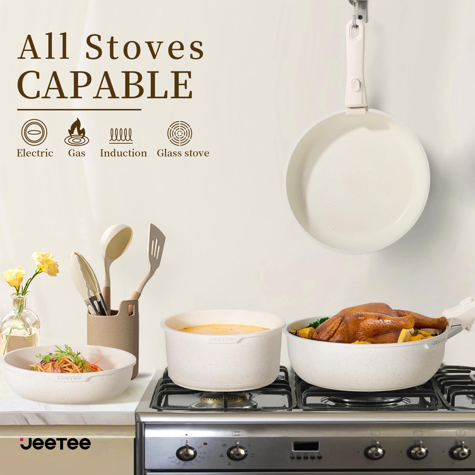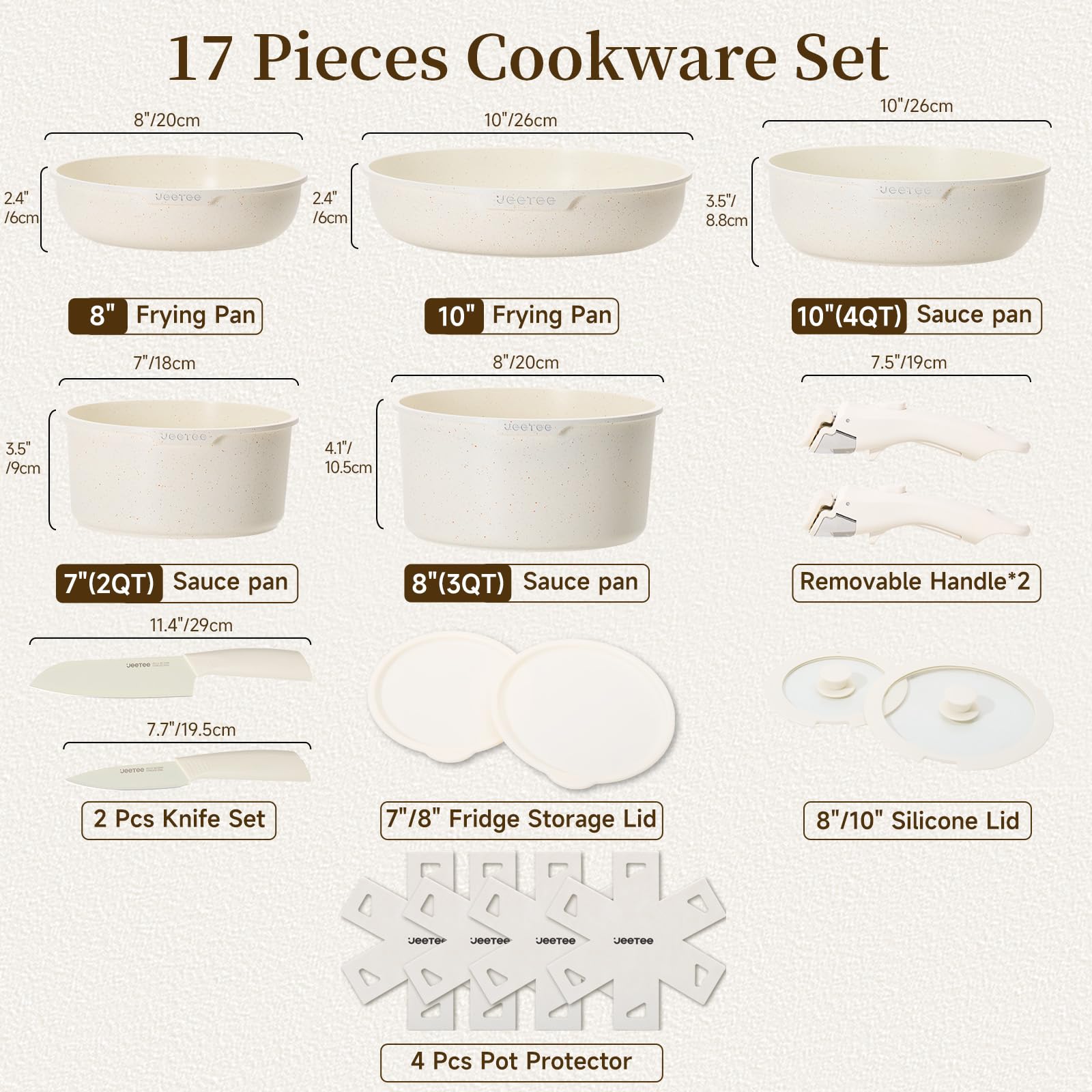 JEETEE Topf- & Pfannenset abnehmbar 17-tlg. Induktion Beige