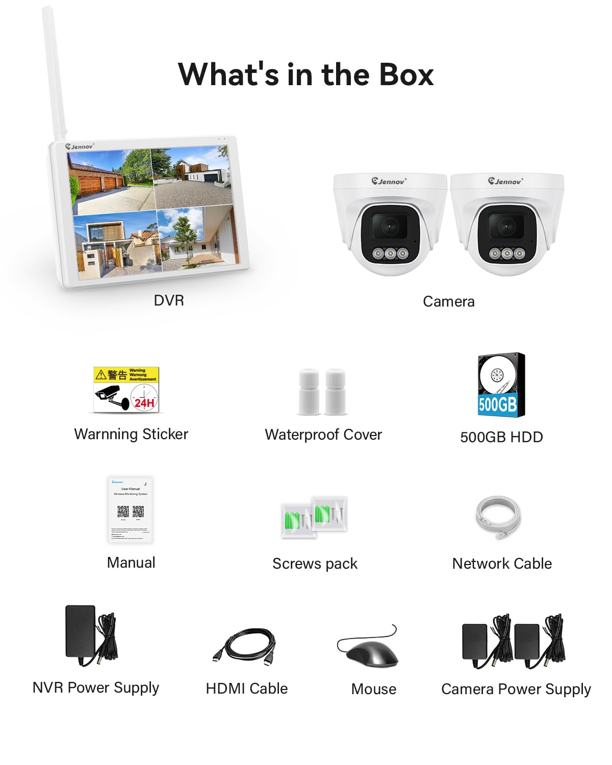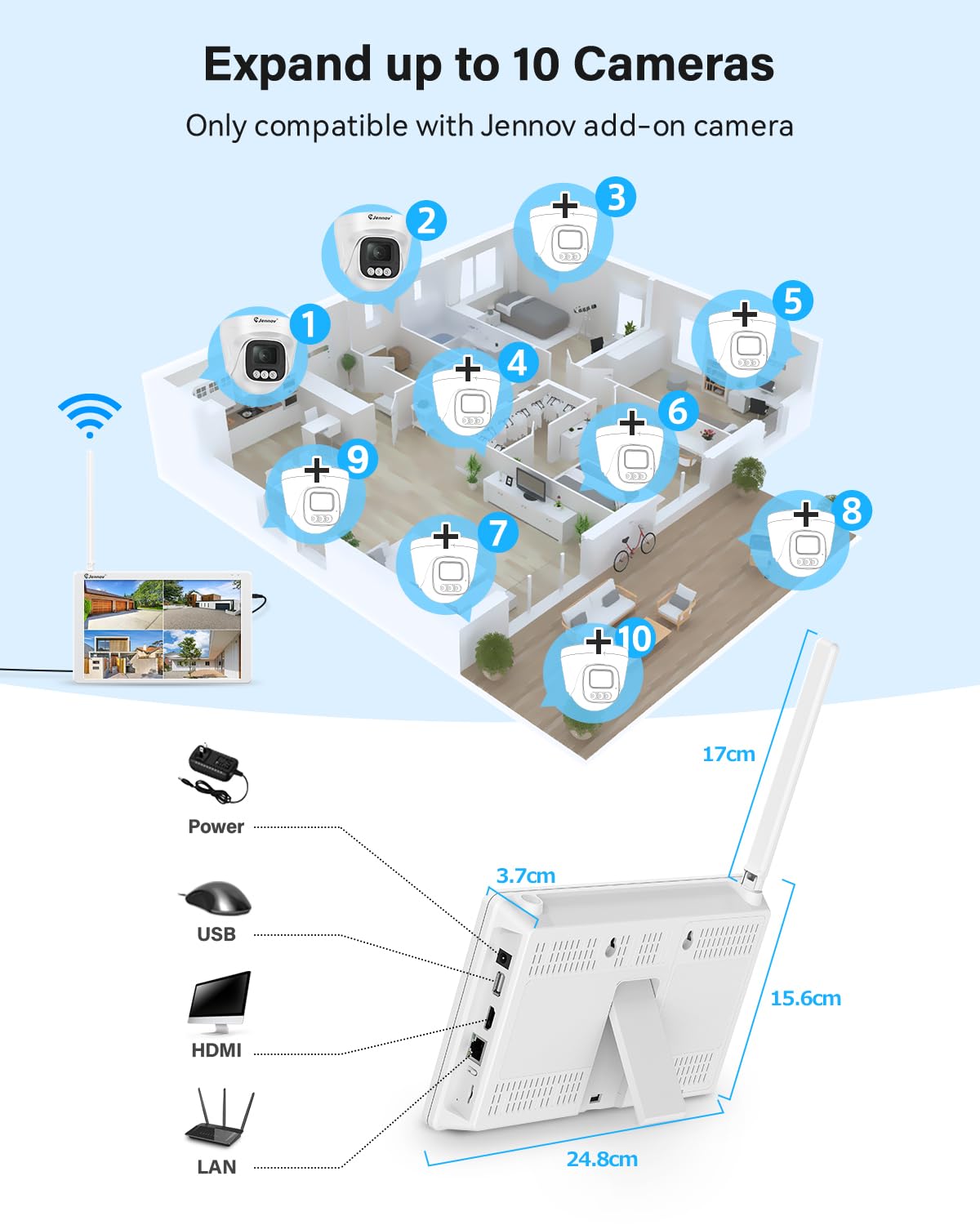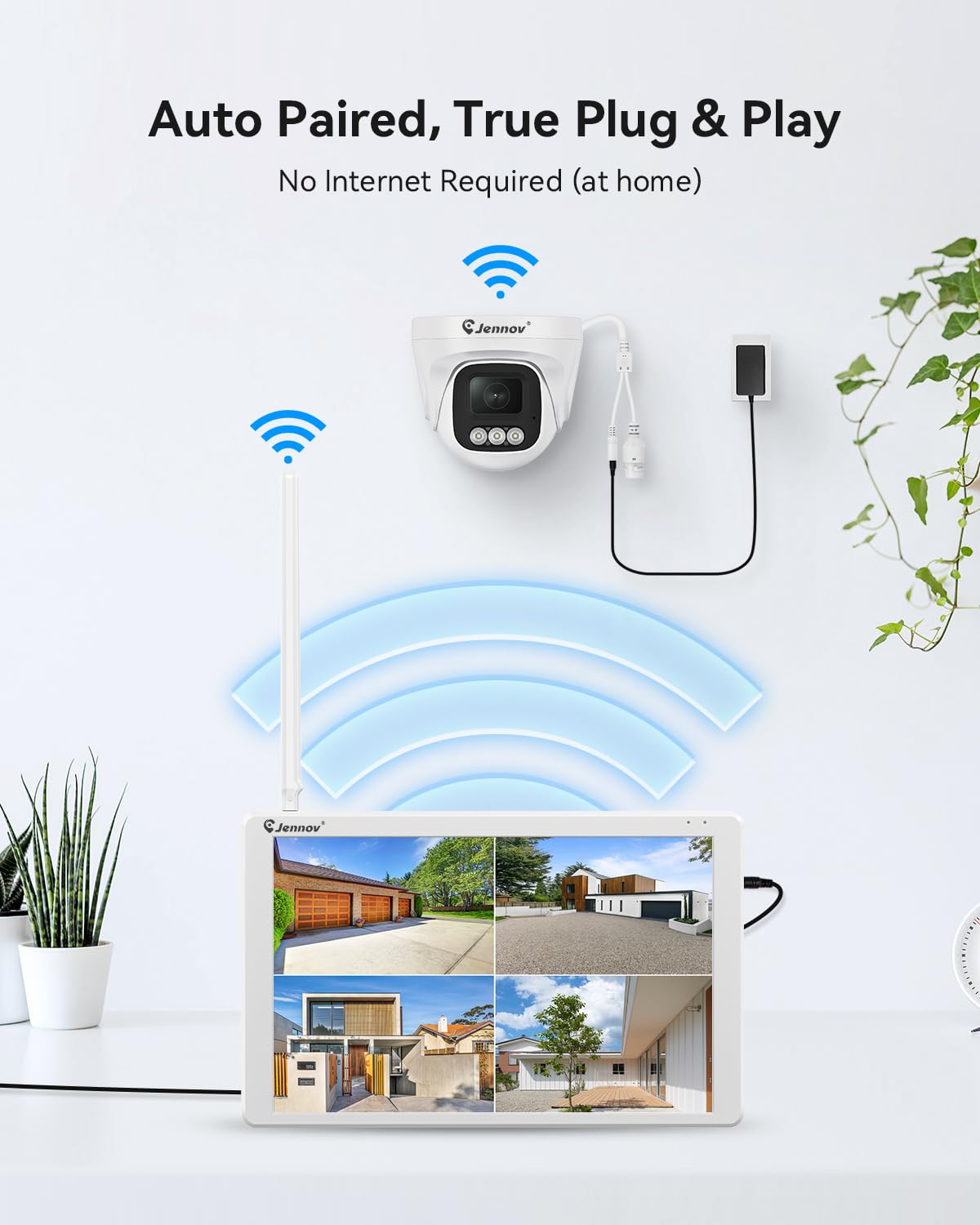 Jennov Überwachungskamera Set 10" Monitor Wireless NVR 2x 5MP Aussen