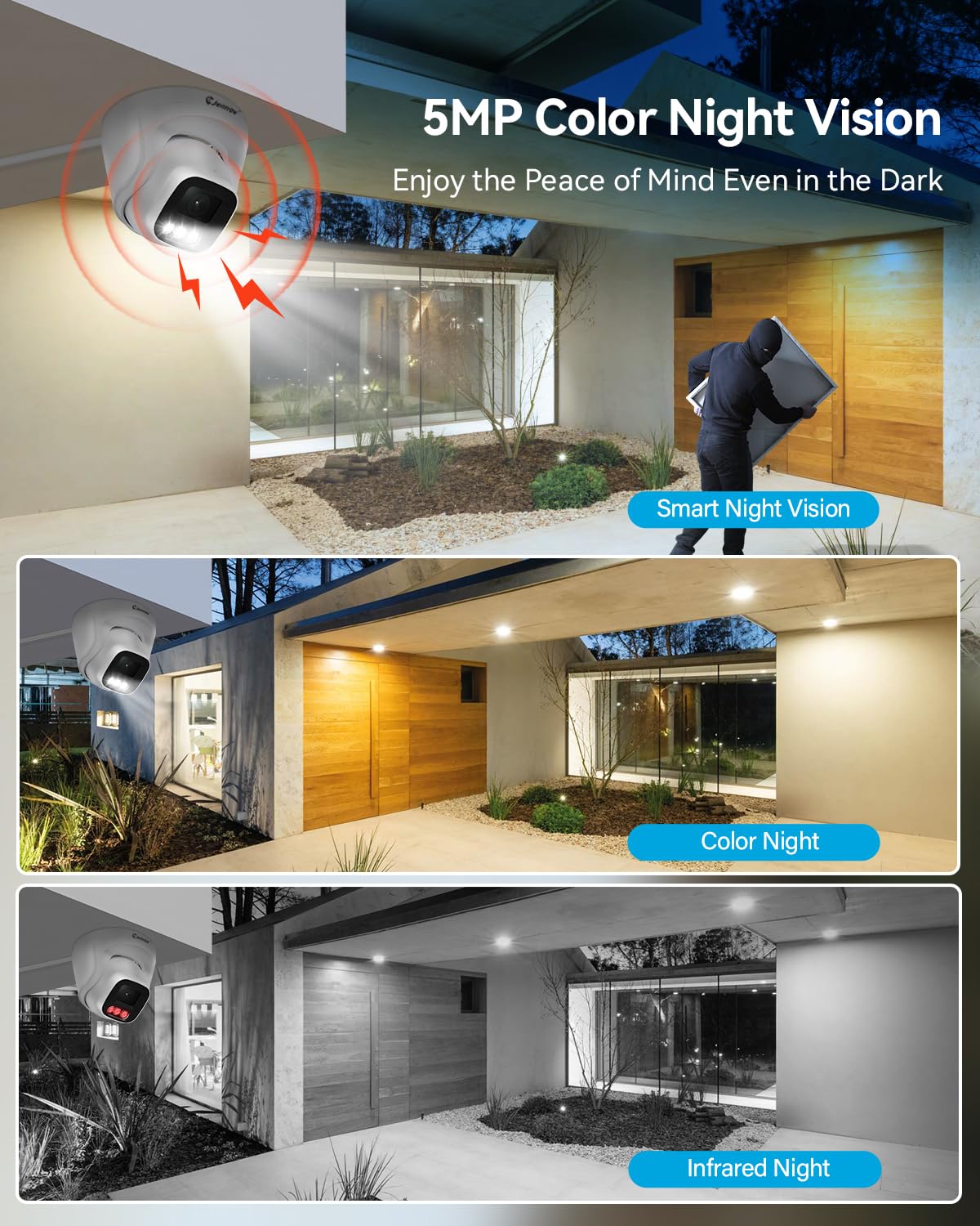 - Brillante Nachtsicht: Fortschrittliche Farb-Nachtsicht-Technologie sorgt auch bei schlechten Lichtverhältnissen für klare und detailreiche Bilder.