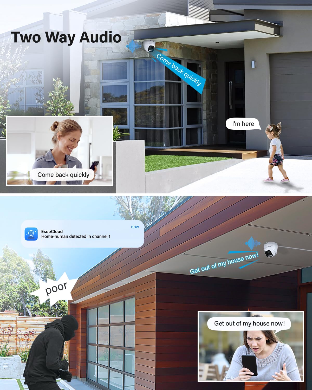 - Interaktive Kommunikation: Eingebautes Mikrofon und Lautsprecher in den Kameras ermöglichen eine Zwei-Wege-Kommunikation.