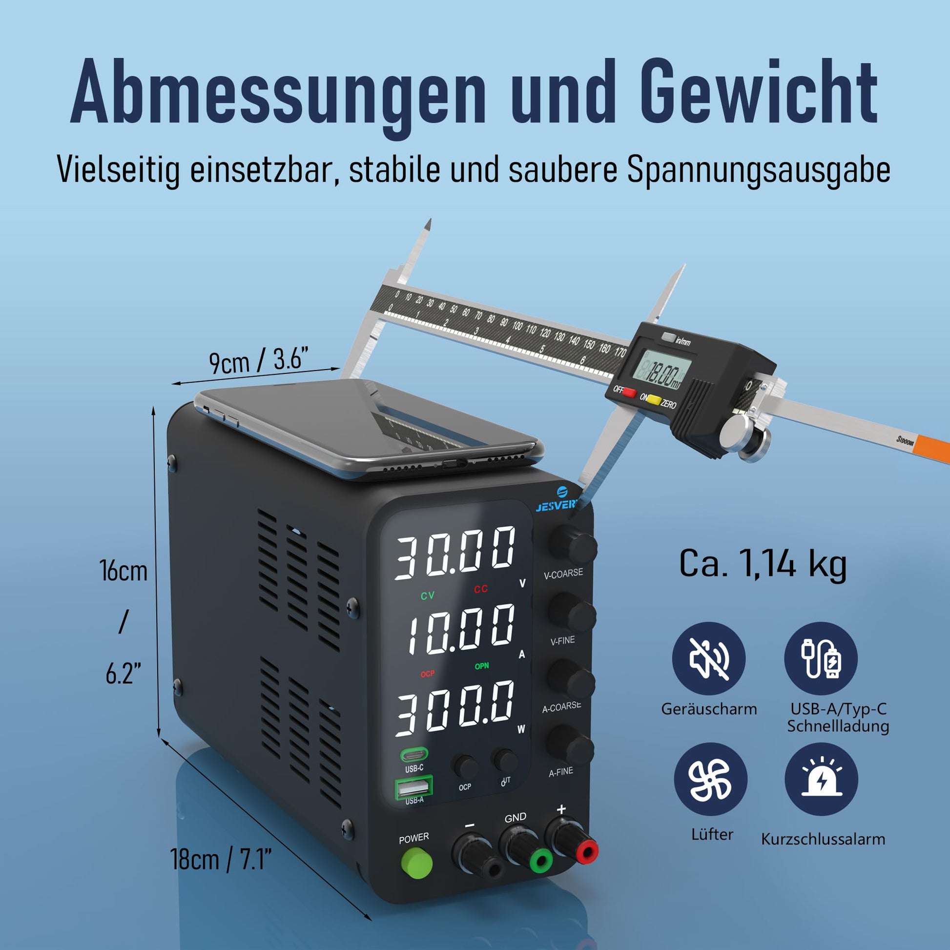 Jesverty SPS-3010V Labornetzteil DC Regelbar - 32V 10A USB-C