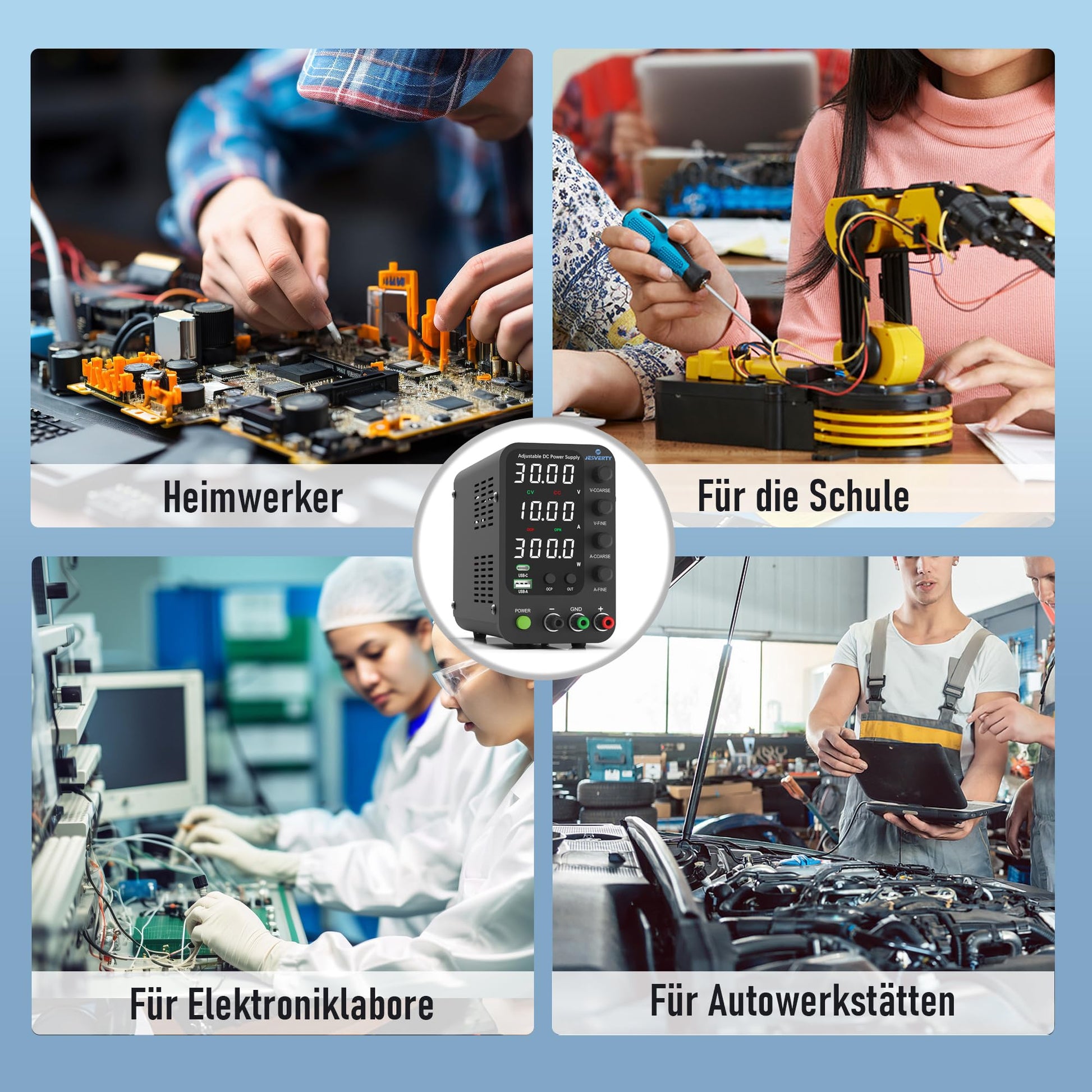 Durch seine kompakte Bauweise und die präzisen Einstellmöglichkeiten eignet sich dieses Netzgerät perfekt für eine Vielzahl von Aufgaben in Laboren, Bildungseinrichtungen, bei Fertigungstests, für Wartungs- und Reparaturarbeiten, zum Laden von Akkus sowie für anspruchsvolle Elektronik- und DIY-Projekte.