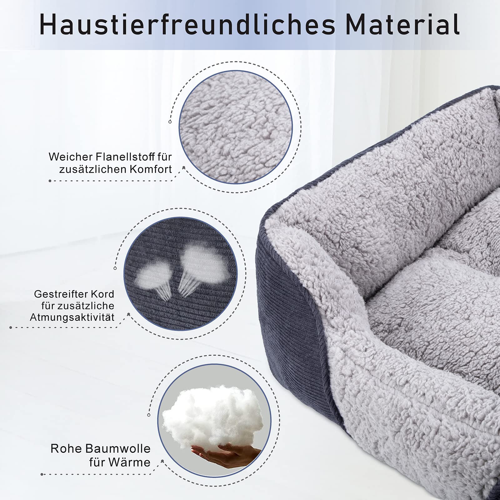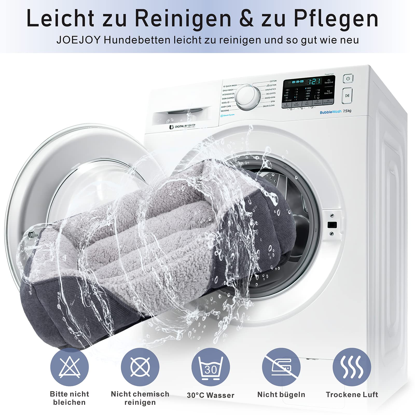 - Einfache Pflege: Das gesamte Hundebett ist für eine unkomplizierte und hygienische Reinigung maschinenwaschbar. Für eine längere Lebensdauer wird Handwäsche empfohlen.