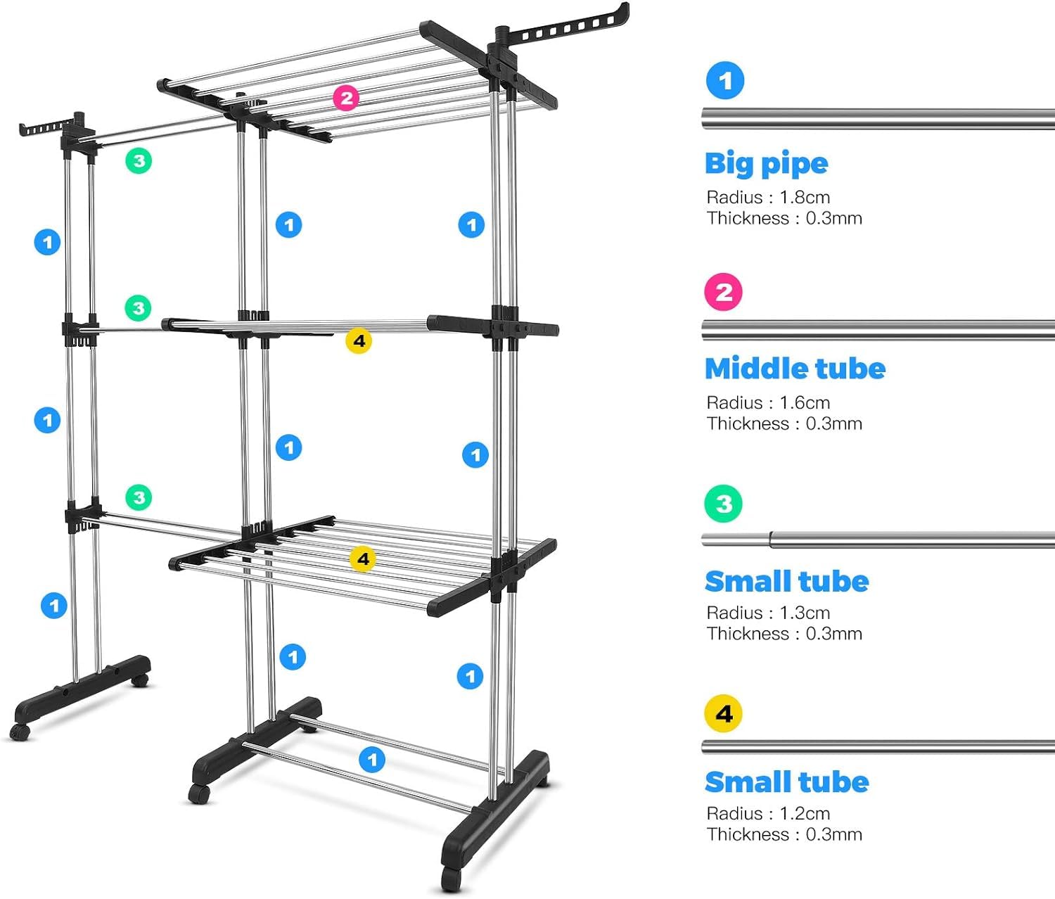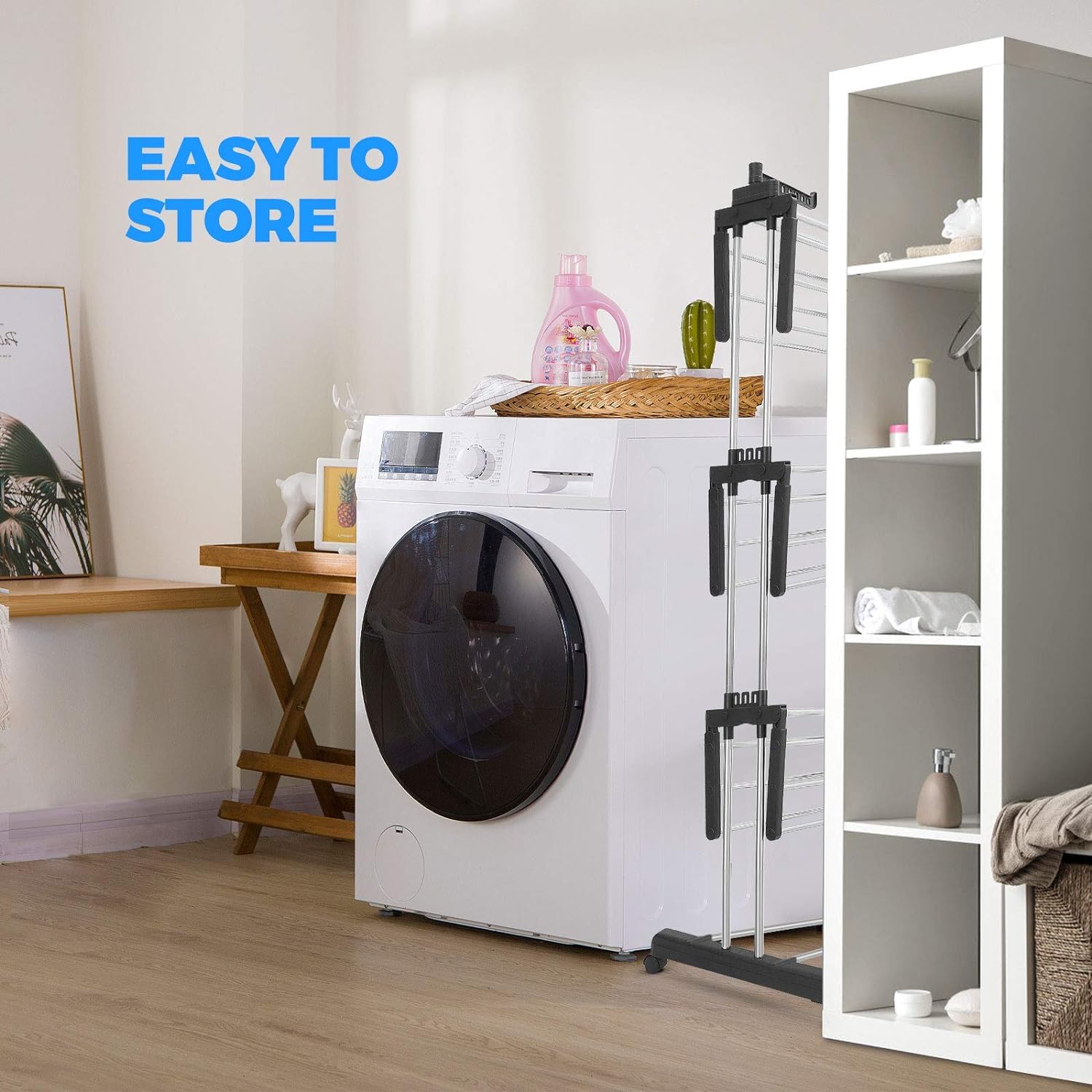 - Grosszügige Kapazität: Drei Ebenen mit sechs klappbaren Flügeln bieten reichlich Platz für Ihre Wäsche und tragen ein Gewicht von bis zu 40 kg.