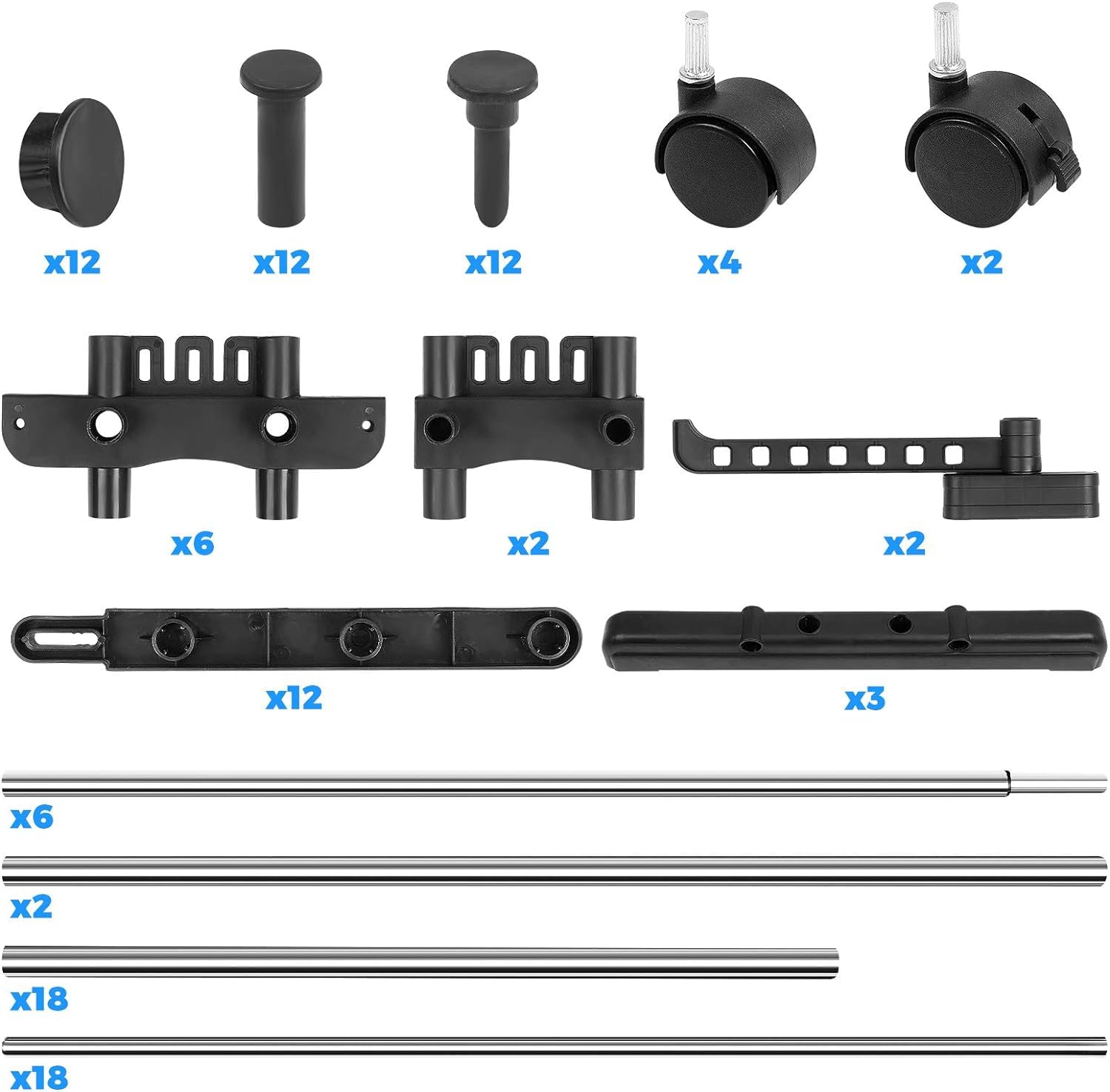 - Flexible Abmessungen: Die Breite des Ständers lässt sich stufenlos von 66 cm bis auf 130 cm ausziehen, bei einer Tiefe von 50 cm und einer Höhe von 170 cm.
