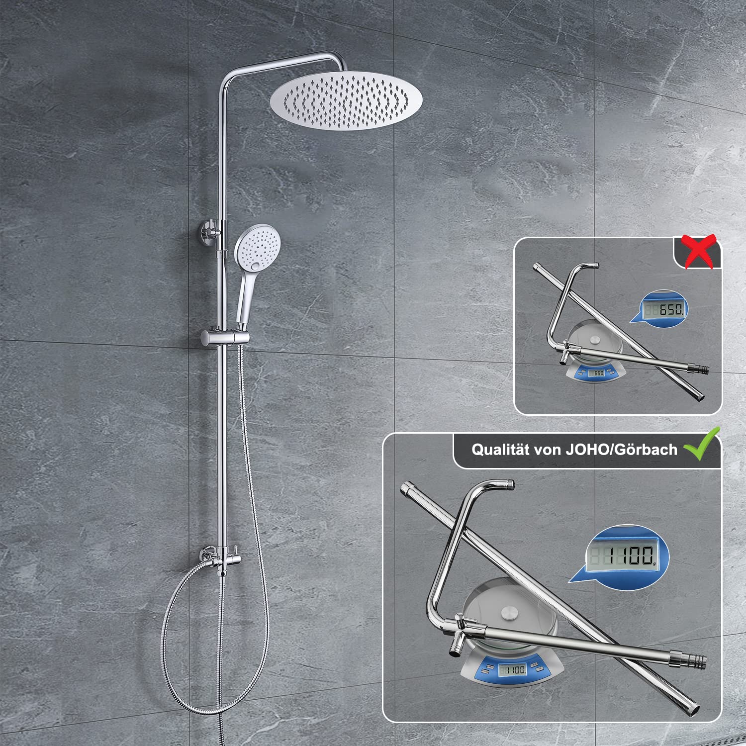 JOHO Duschsystem Regendusche - Edelstahl Rund D25cm