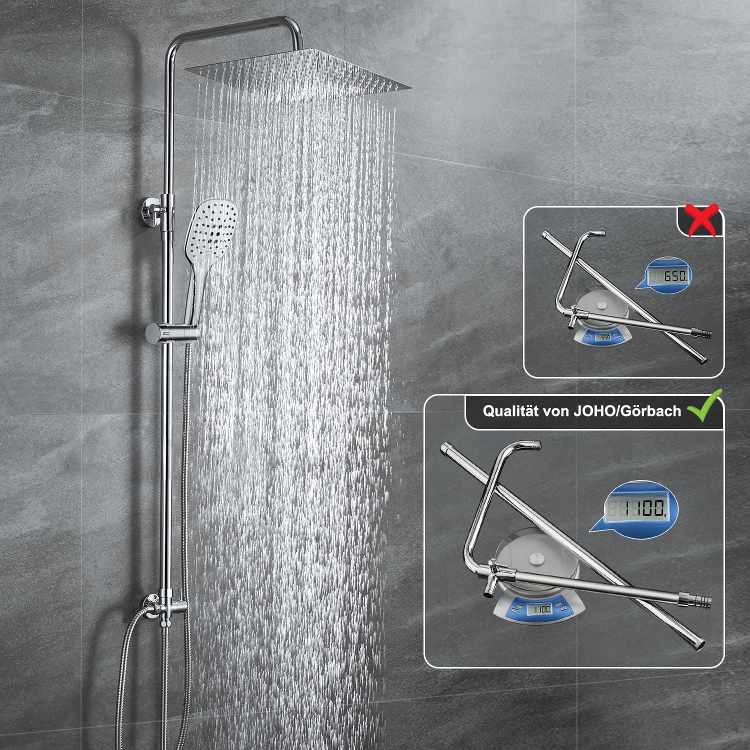 JOHO Duschsystem ohne Armatur – Edelstahl eckig 20x20cm chrom
