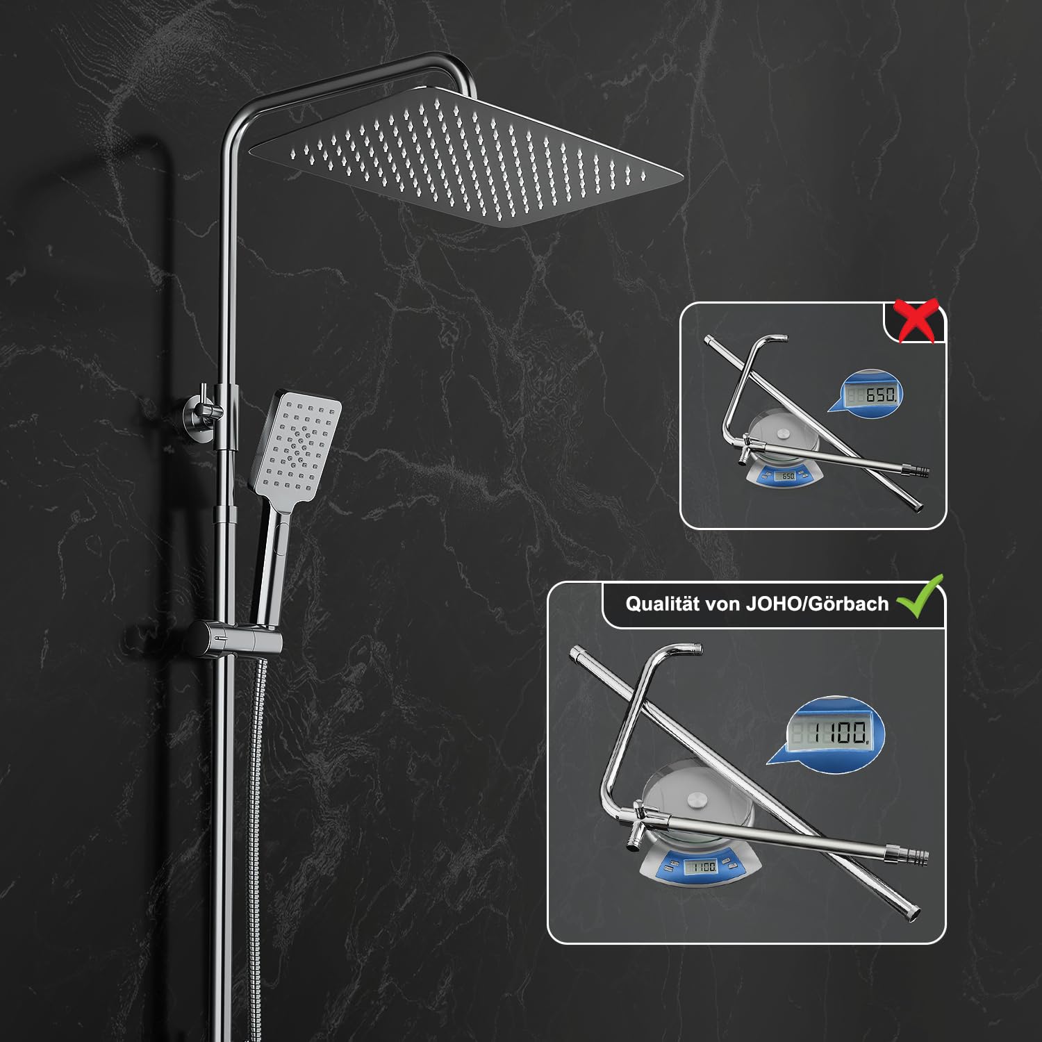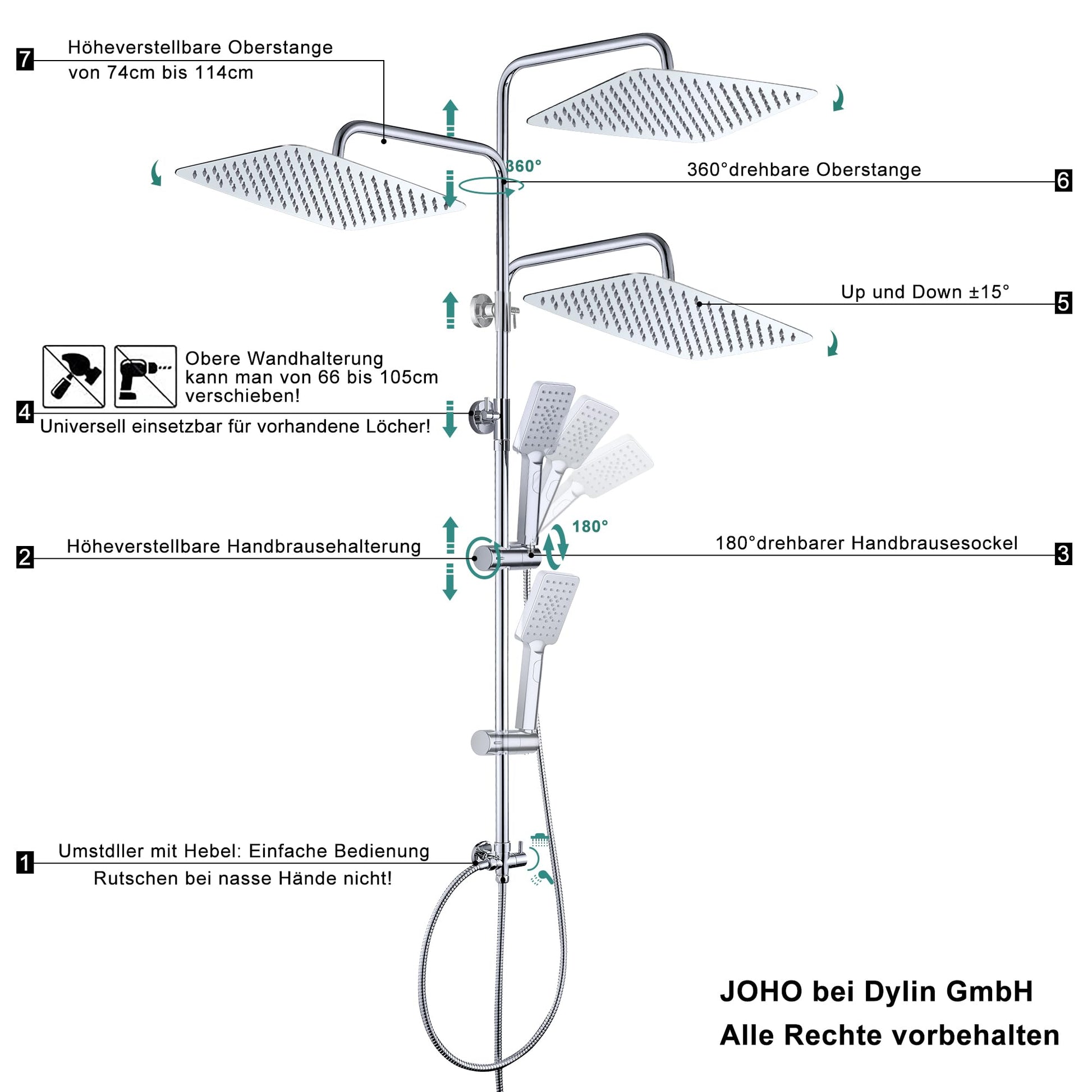 JOHO Regendusche Duschsystem Edelstahl XXL Kopfbrause ohne Armatur Chrom