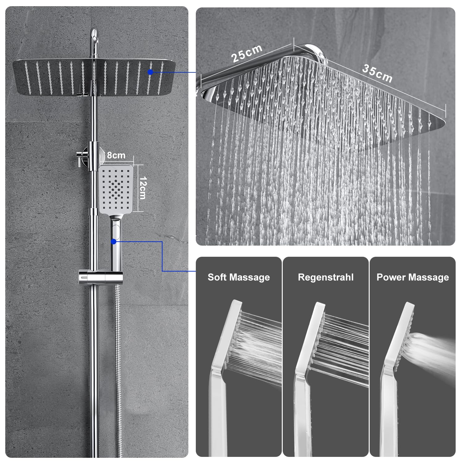 - XXL-Kopfbrause: Grossflächige Regendusche (35 x 25 cm) aus Edelstahl mit Spiegeleffekt und pflegeleichten Anti-Kalk-Düsen.