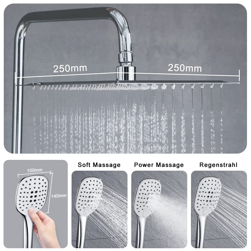 - Grosse Überkopfbrause: Quadratischer Regenduschkopf (25 x 25 cm) aus Edelstahl mit edlem Spiegeleffekt und pflegeleichten Anti-Kalk-Düsen.