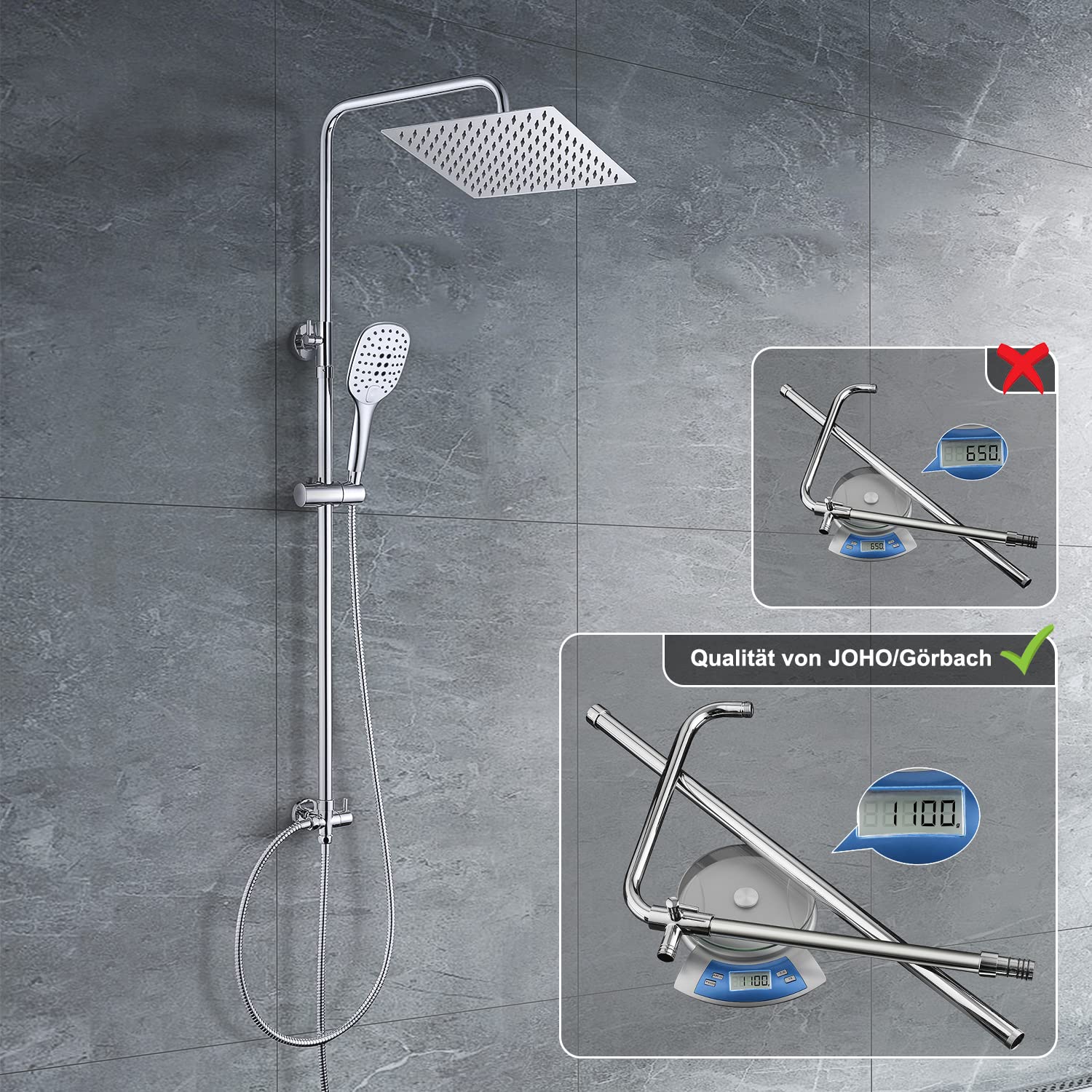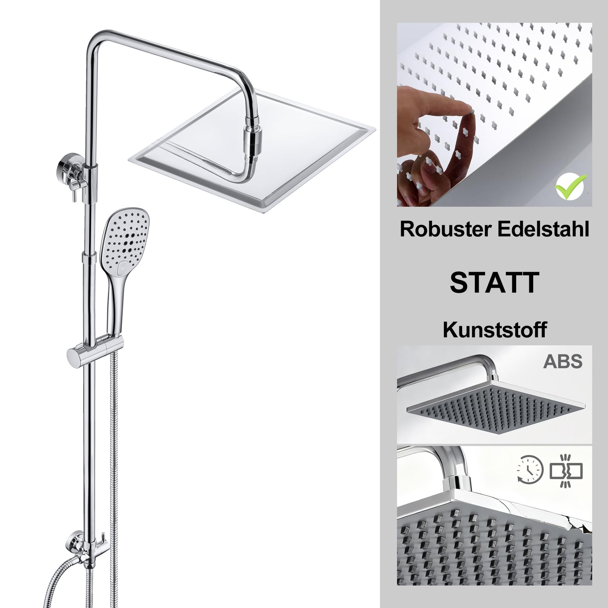 JOHO Regenduschset Edelstahl Chrom 25x25cm eckig ohne Armatur