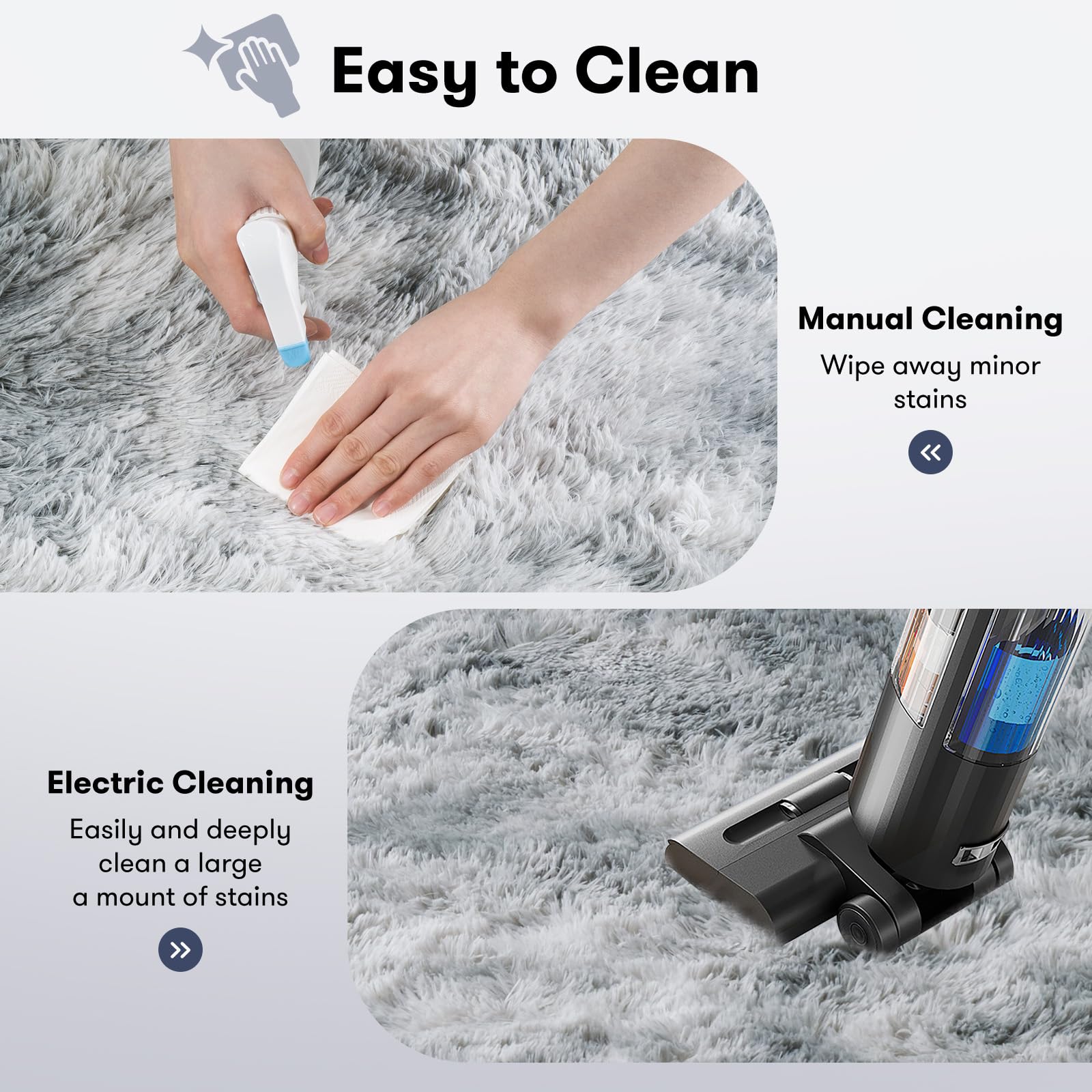 Für die tägliche Reinigung wird ein Handstaubsauger empfohlen. Für eine gründlichere Säuberung ist eine sanfte Handwäsche mit mildem Reinigungsmittel vorgesehen. Nach dem Waschen sollte der Teppich zum Trocknen an einem gut belüfteten Ort ausgelegt werden, um seine Weichheit zu bewahren.